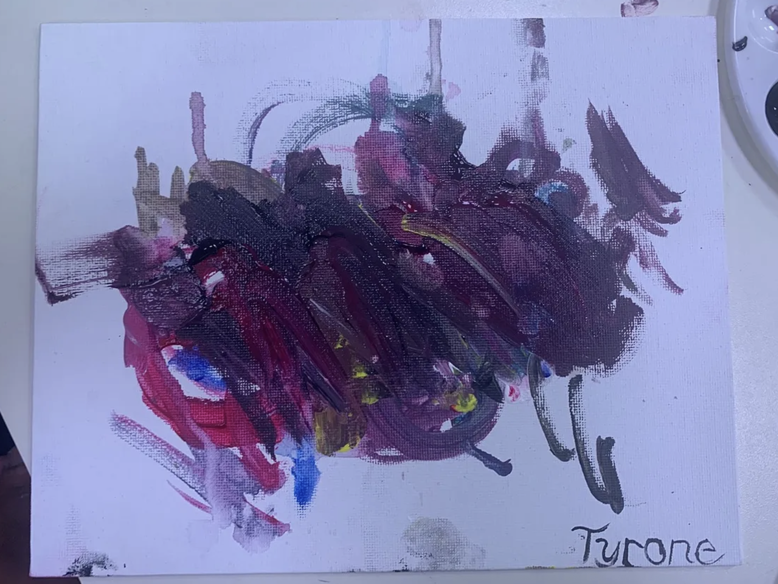 Every other Tuesday, they make the drive to Hartford for the painting event, which many of the adults in the program love. The librarians greeted the group like old friends when they arrived. A young man named Tyrone happily obliged when I asked if I could take a picture of his artwork.