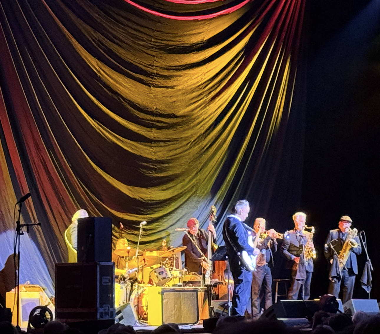 Bonnie’s band could pick it up, too, doing that roadhouse, backroom blues sound like few others can. It matched wonderfully with her opener, Jimmie Vaughan & The Tilt-A-Whirl Band. They blended Southern blues guitar licks with a brass section and drummer who added this big band swing sound that, put against the simple-yet-sophistcated backdrop of a draped curtain, fit the Fox Theatre and the audience perfectly.