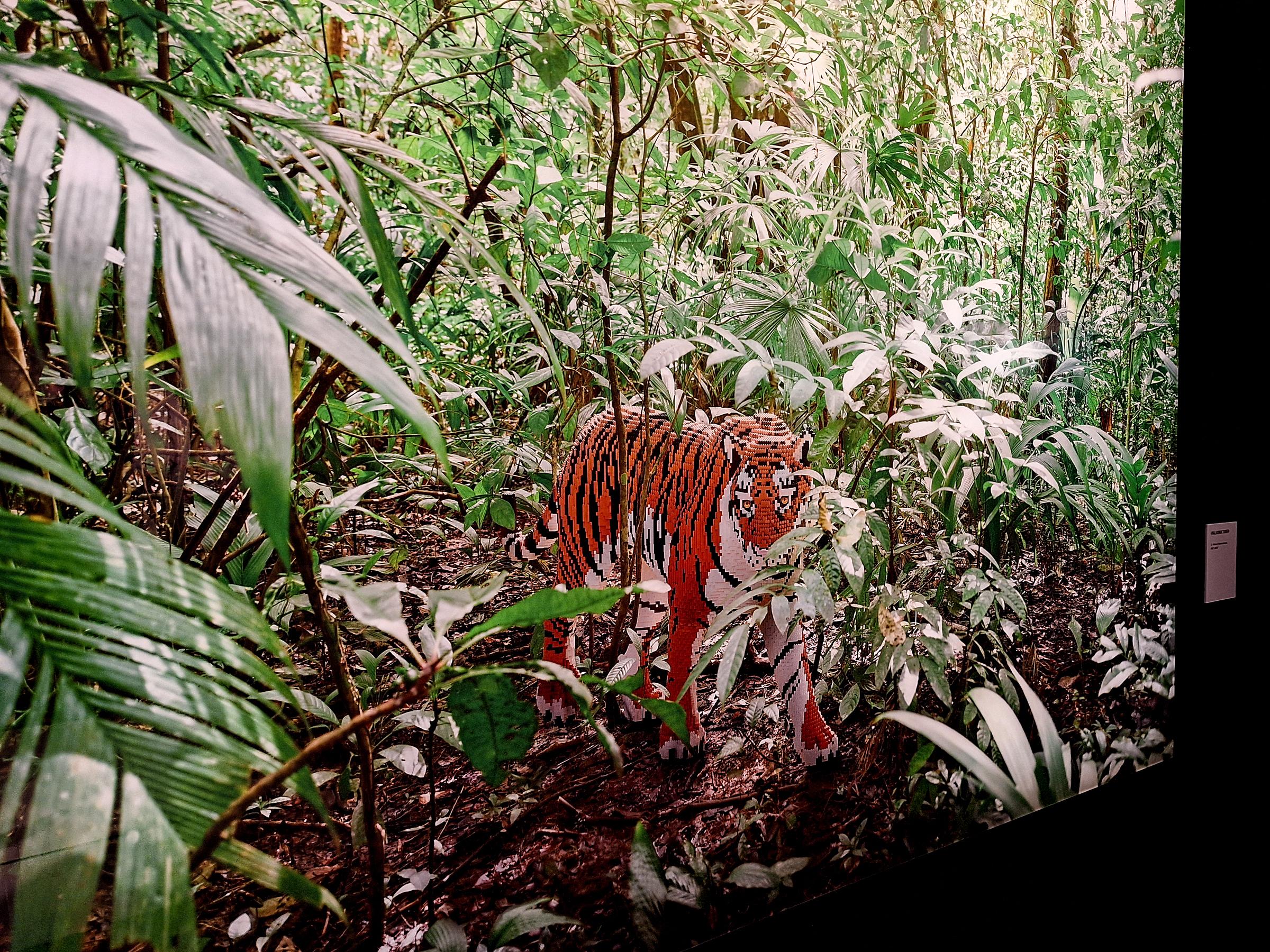 I think Sawaya and West achieve their most successful work, and my favorite works of the show, in the next and final full gallery of sculptures, working together to create National Geographic-inspired images of wild animals in their natural habitats. The photographed scenes are so intricate that they look like rare snapshots until you step a little closer — and realize the subjects never felt a heartbeat, let alone killed an antelope. These Lego sculptures were the most convincingly depicted sculptures of the show: Sawaya nailed the depth of the patterns and forms of the wild animals he sought to recreate for the composite images. Of the whole show, these were the first creations I would’ve bought a print of in the gift shop if offered, besides maybe one or two of the famous art recreations.