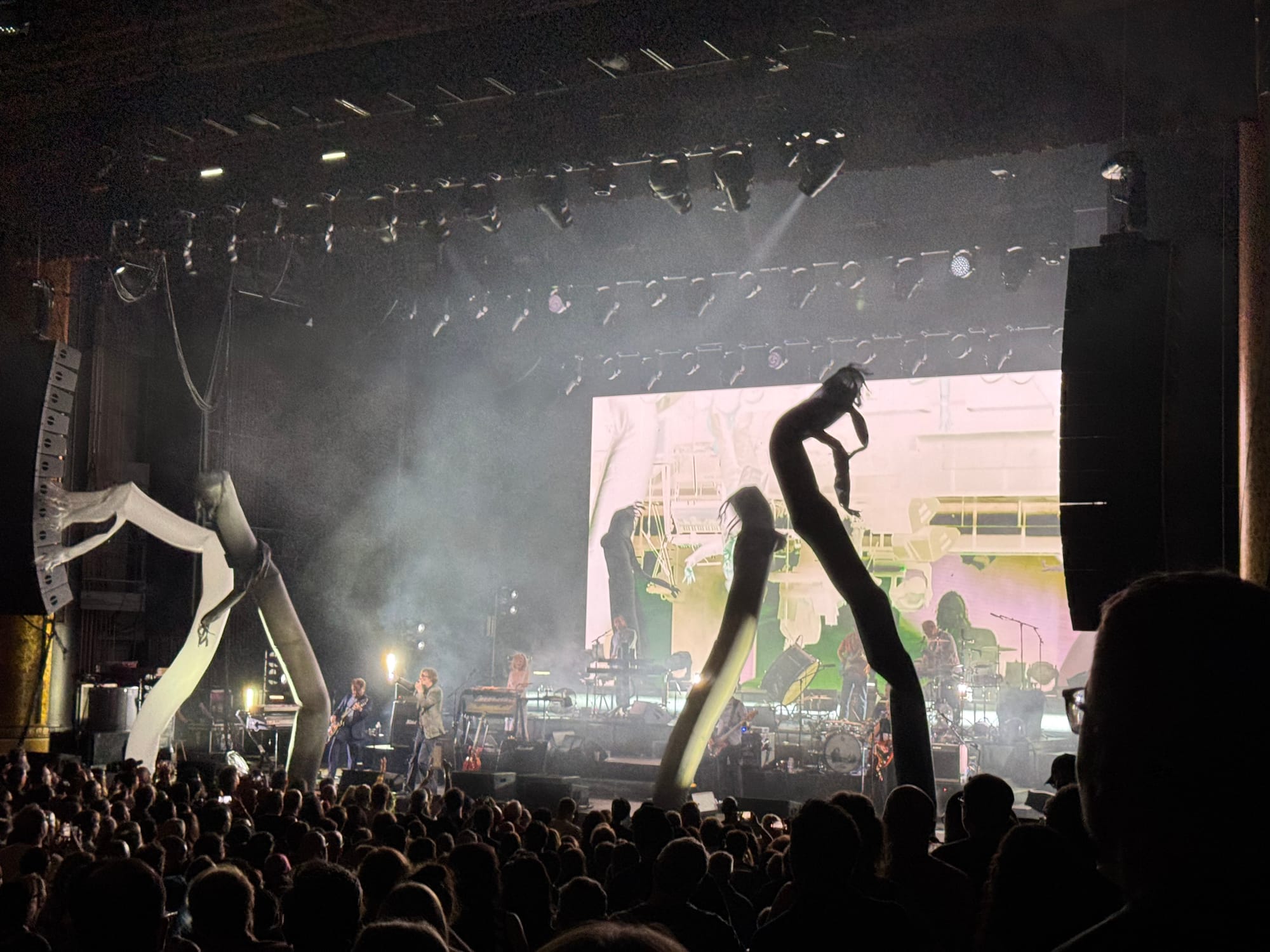 That starts with Jarvis Cocker, the frontman of Pulp, who feels as if Mick Jagger and Elvis Costello had a baby. He came out swinging and sauntering, bounding up illuminated risers that held the eight-piece touring version of Pulp, who performed a two-hour set light on new material and focused on what the people want – the hits! (And I've got to say: The giant inflatable figures that you'd normally see outside of a used car dealership were a nice touch.)