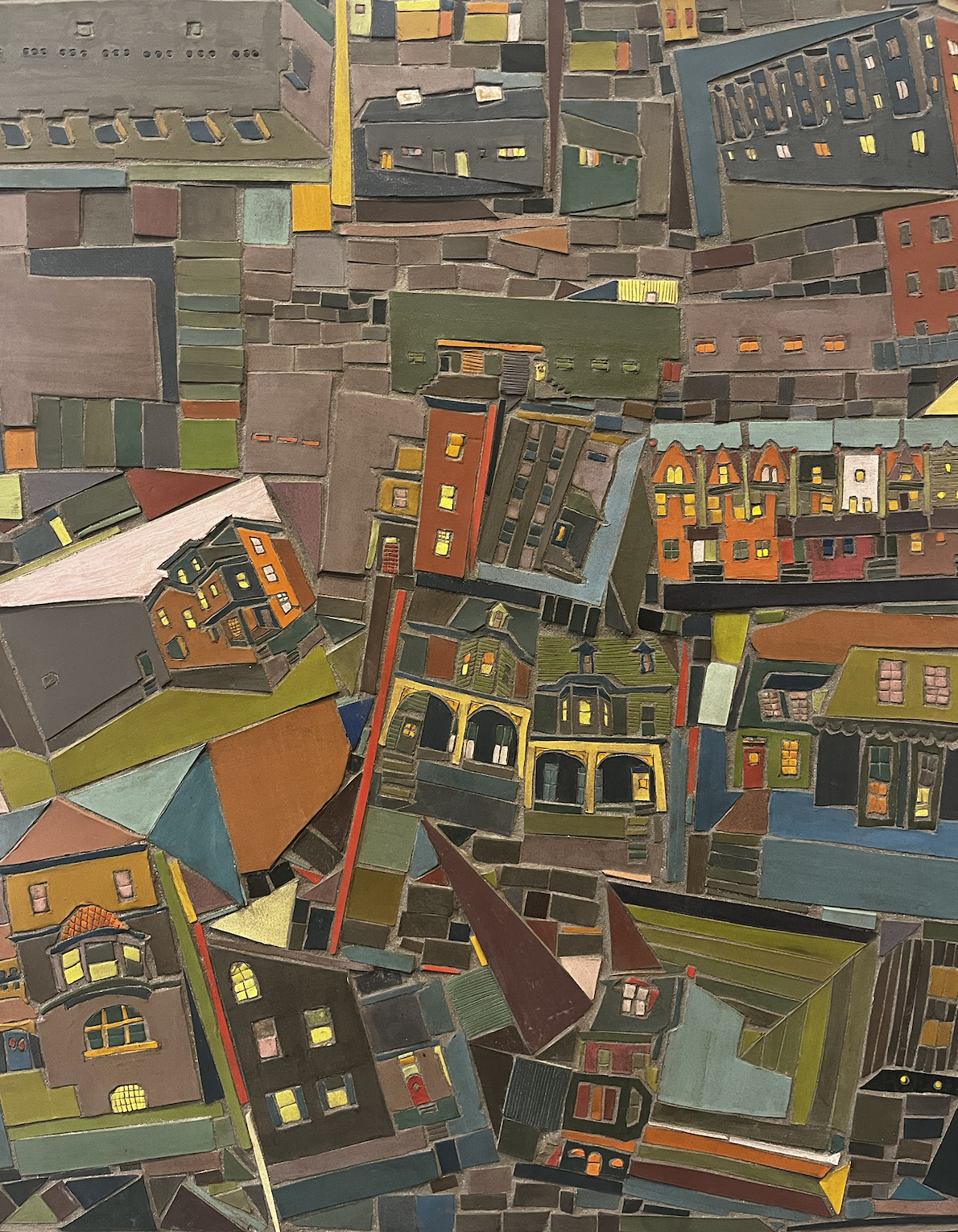 In her mosaic landscapes of West Philadelphia, artist Jennifer Johnson captures the motion of neighborhood evolution. Her work is part of a broader exhibit at Drexel University’s Pearlstein Gallery called “Contemporary Ruin future visions.”