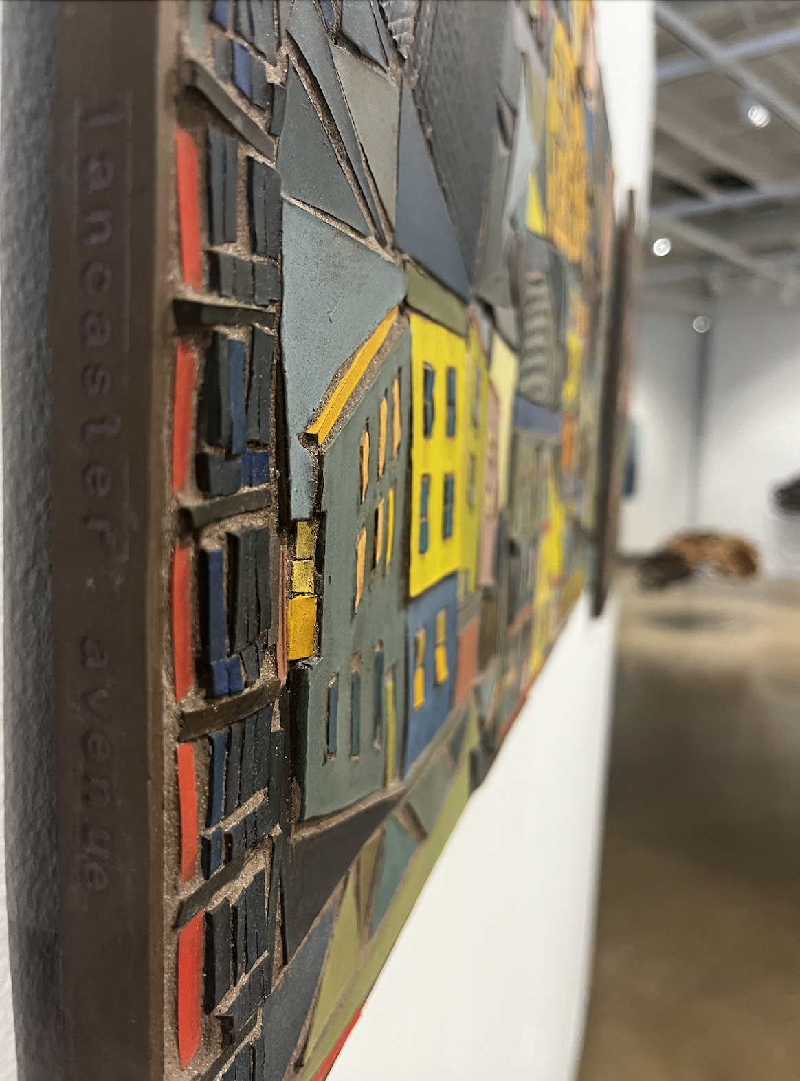 Johnson’s mosaics of Lancaster Avenue and 34th Street in West are probably the least literal works on display. They are also the most lively and profound.