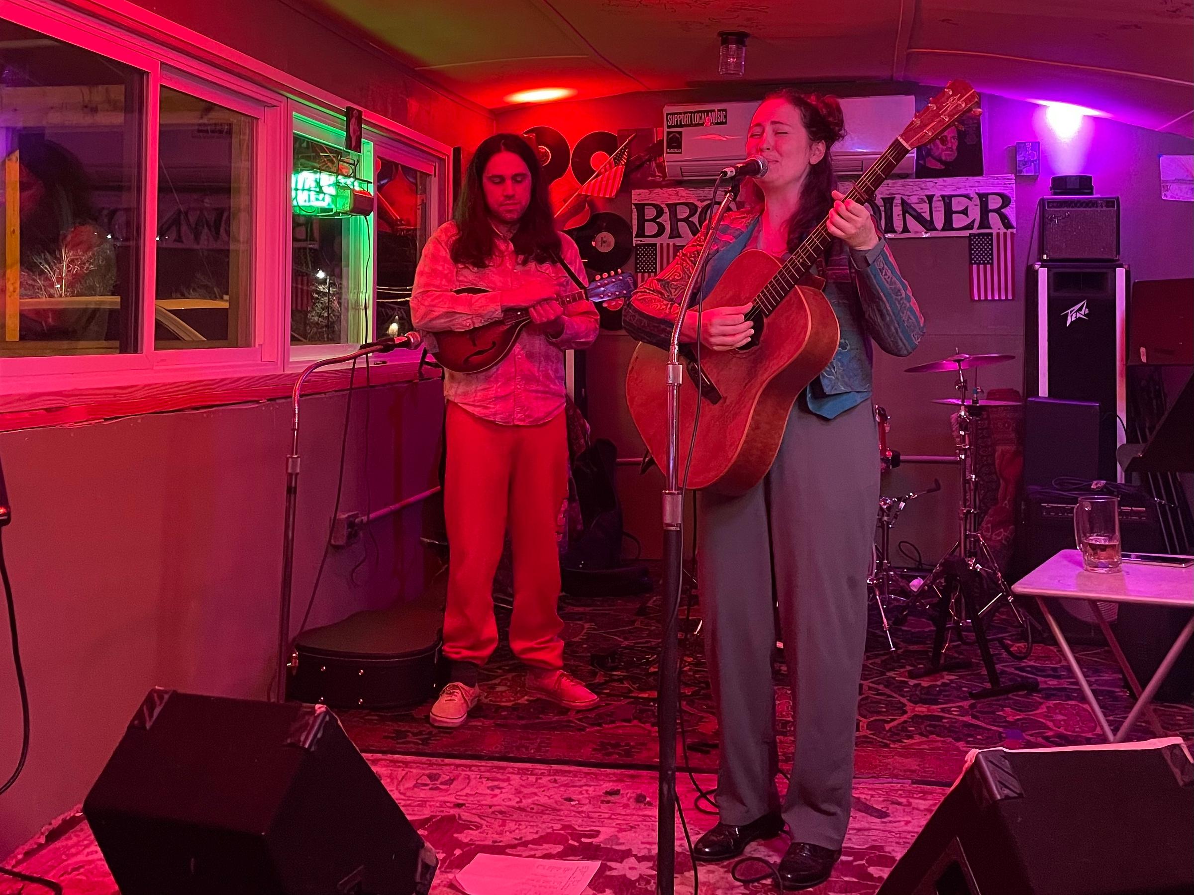 I took my pound cake and moved from the bar to a chair right in front of the speakers to be sure I could hear the meticulous detail of Ziona Riley’s songs. Now, the sound at Brown’s is not spectacular. Every time I’ve been, performers run their own sound through a very no-frills system, which makes sitting close to the stage pretty essential to hearing lyrics. This is Brown’s Achilles heel as a venue, but perhaps not paying a sound person every night keeps food prices accessible and artists’ personal investment low, so it can be forgiven.