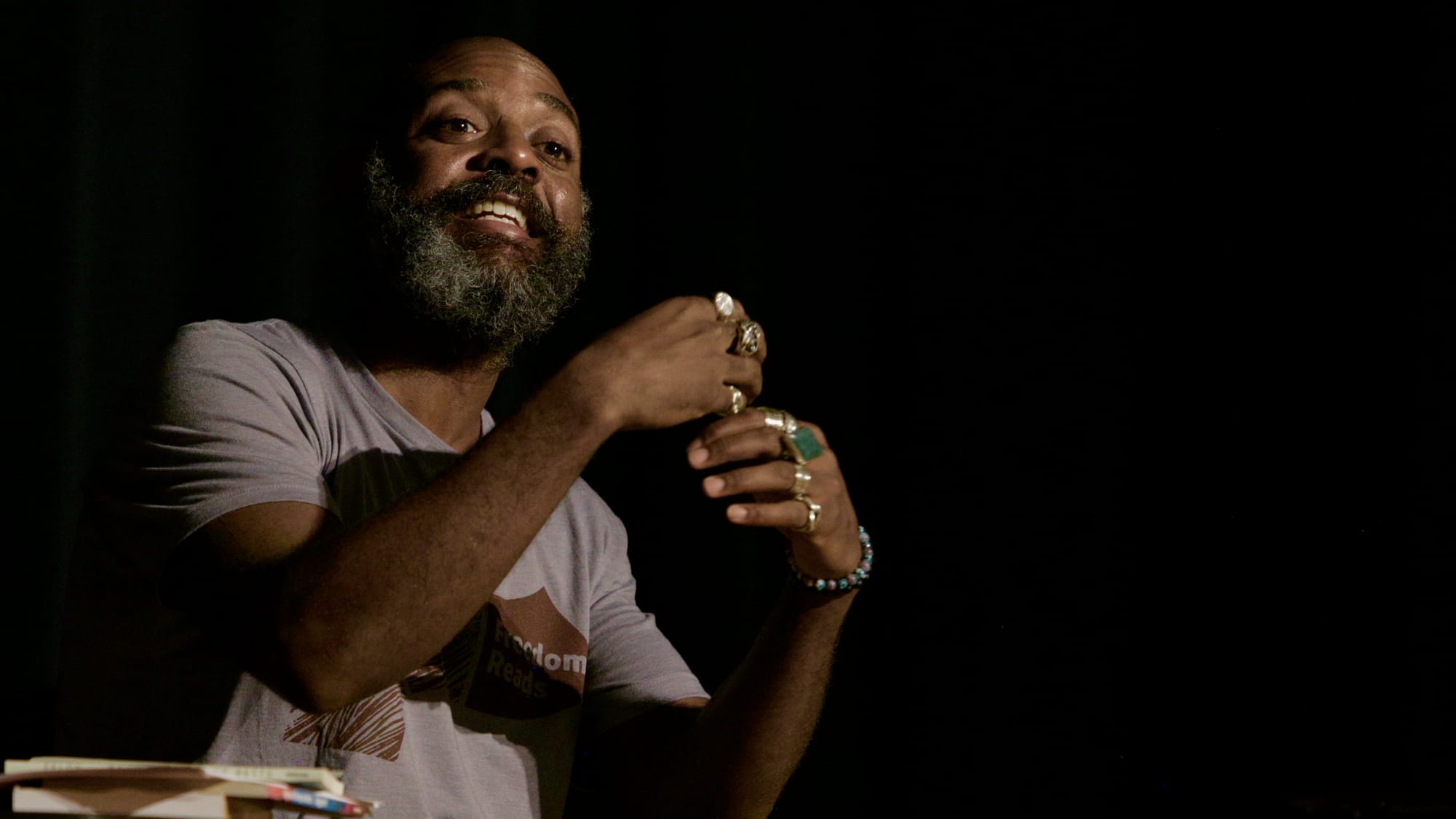 LitFest’s keynote event, a performance by poet Reginald Dwayne Betts, narrowed in on themes of freedom and justice that were threaded through the festival. Betts has an impressive resume—J.D. from Yale Law, MacArthur Fellow, Guggenheim Fellow, National Magazine Award winner, Harvard Radcliffe Fellow—and started the organization Freedom Reads, which has put more than 400 open libraries in prisons across 12 states.