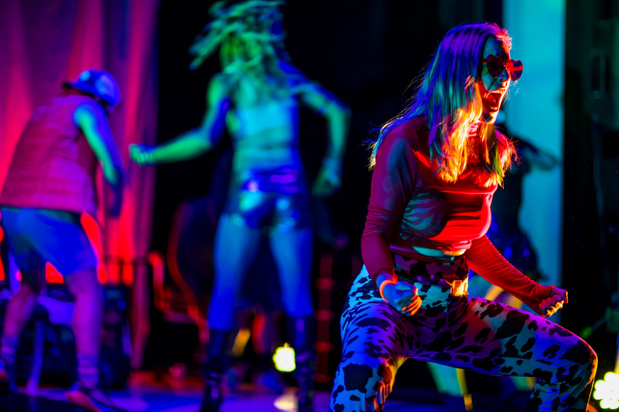 As the title suggests (pulled from The Strokes’ 2003 hit “Replitia”), Benji’s Mania—personified by Elenor Irene Paul, also responsible for the absolutely batshit costuming—was all gas no brakes, and her full-throttle approach paid off in full. At turns delightful and abhorrent, charming and encouraging, but always, always self-destructive, she stole each scene, star-eye shining.