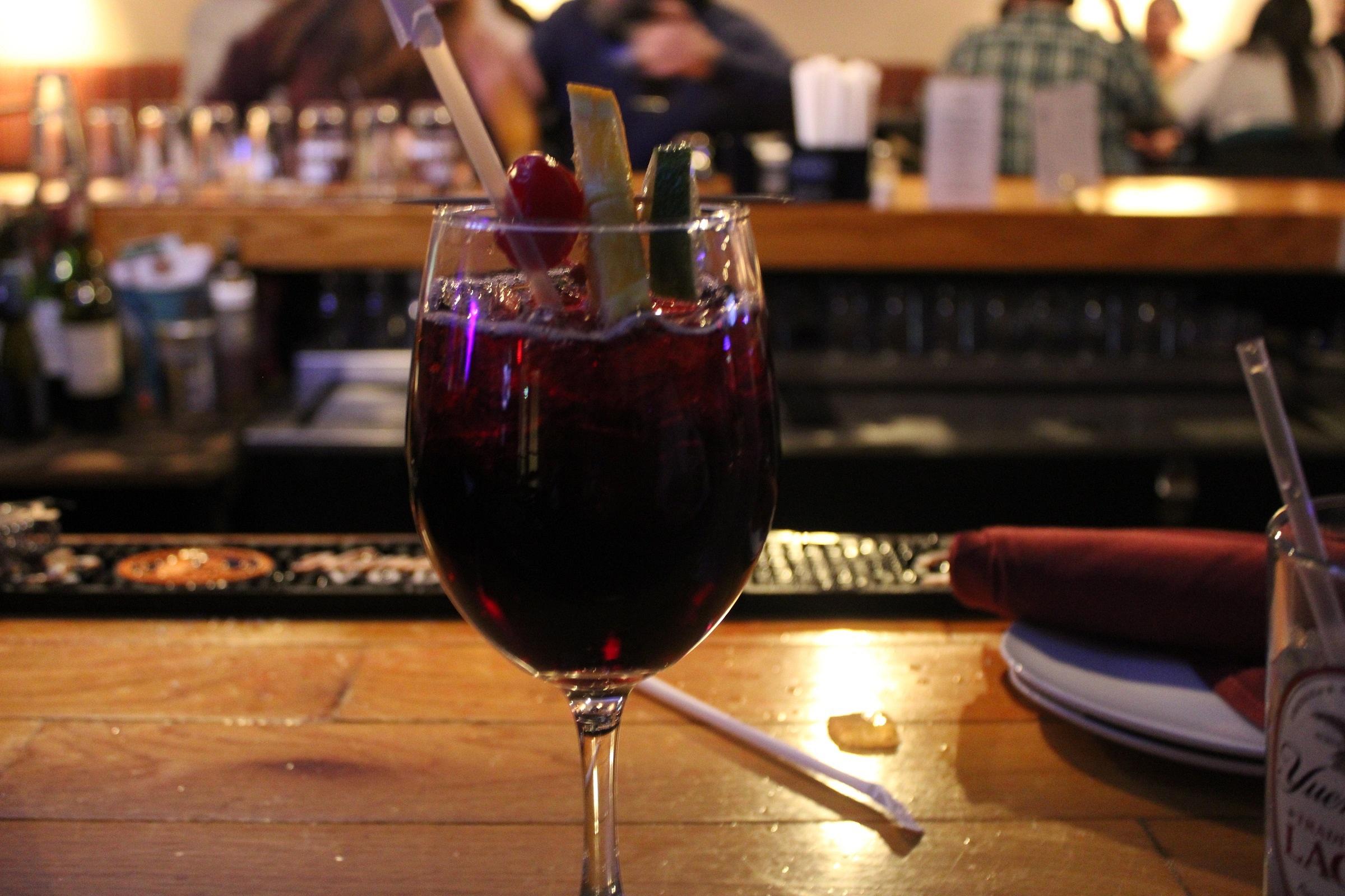 While I waited I sampled a couple of the specialty cocktails on the menu. I started with the red apple sangria. I don’t usually drink wine, but the description of apple liqueur, Proverb cabernet sauvignon, orange juice and club soda sounded intriguing. It didn’t do much to change my opinion of wine, though, as the drink fell heavy on my tongue without any of the lightness I expected the apple and orange flavors to bring. The cranberry mule on the other hand was refreshing and tasty, thanks in large part to the ginger beer at its base.