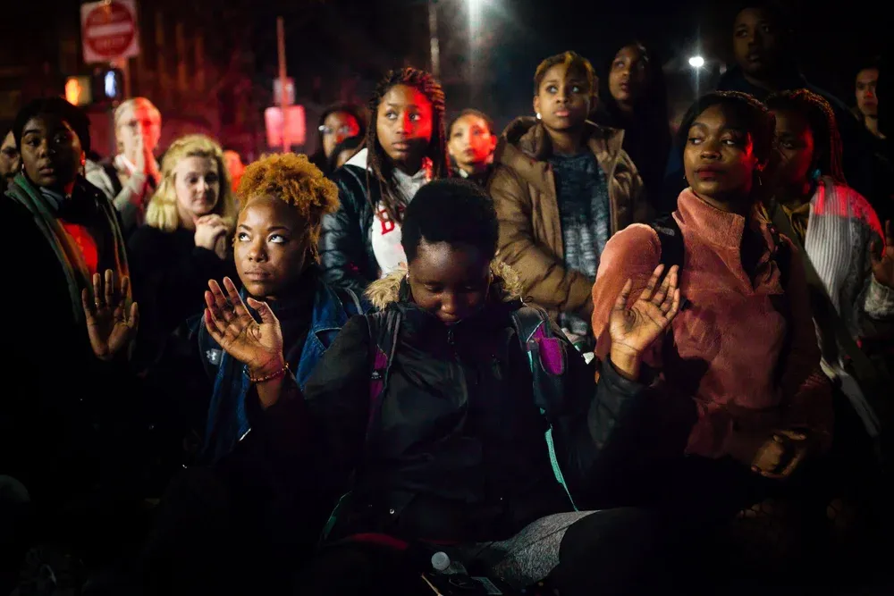 Arvia Walker's Solace, however, might tell the most complex story. It's a street scene, a gathering of some kind that suggests the people in it are occupying a space that's usually empty, as they might at a protest, a concert, a religious gathering. But what is to be made of the expressions on those gathered people's faces? A host of complicated emotions play across their brows: absorption, concern, maybe even a little disdain from one corner. What are they all looking at? And what about the person in the middle of the image, their eyes cast downward, hands out, as if in meditation or prayer. They've moved on to somewhere else, beyond the worry around them. Are they avoiding the problem or transcending it. And if all the hunted and haunted people in that image could speak, what would they say?