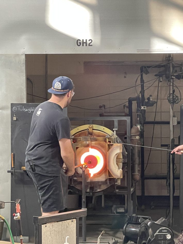 "It takes a long time to sound like yourself." That’s how artist Cedric Mitchell, quoting Miles Davis, expressed the journey he’s taken to get to his own style in his chosen medium, a form of glassblowing he calls “modern funk.” Originally from Tulsa and now residing in California, Mitchell has shown his art around the world and collaborated with brands like Nike, Meta, and LEGO, but he’s never stayed away from Tulsa too long. He recently collaborated with Tulsa Artist Fellowship to showcase his modern funk in a live “performative glassblowing” session as part of their Open House weekend.