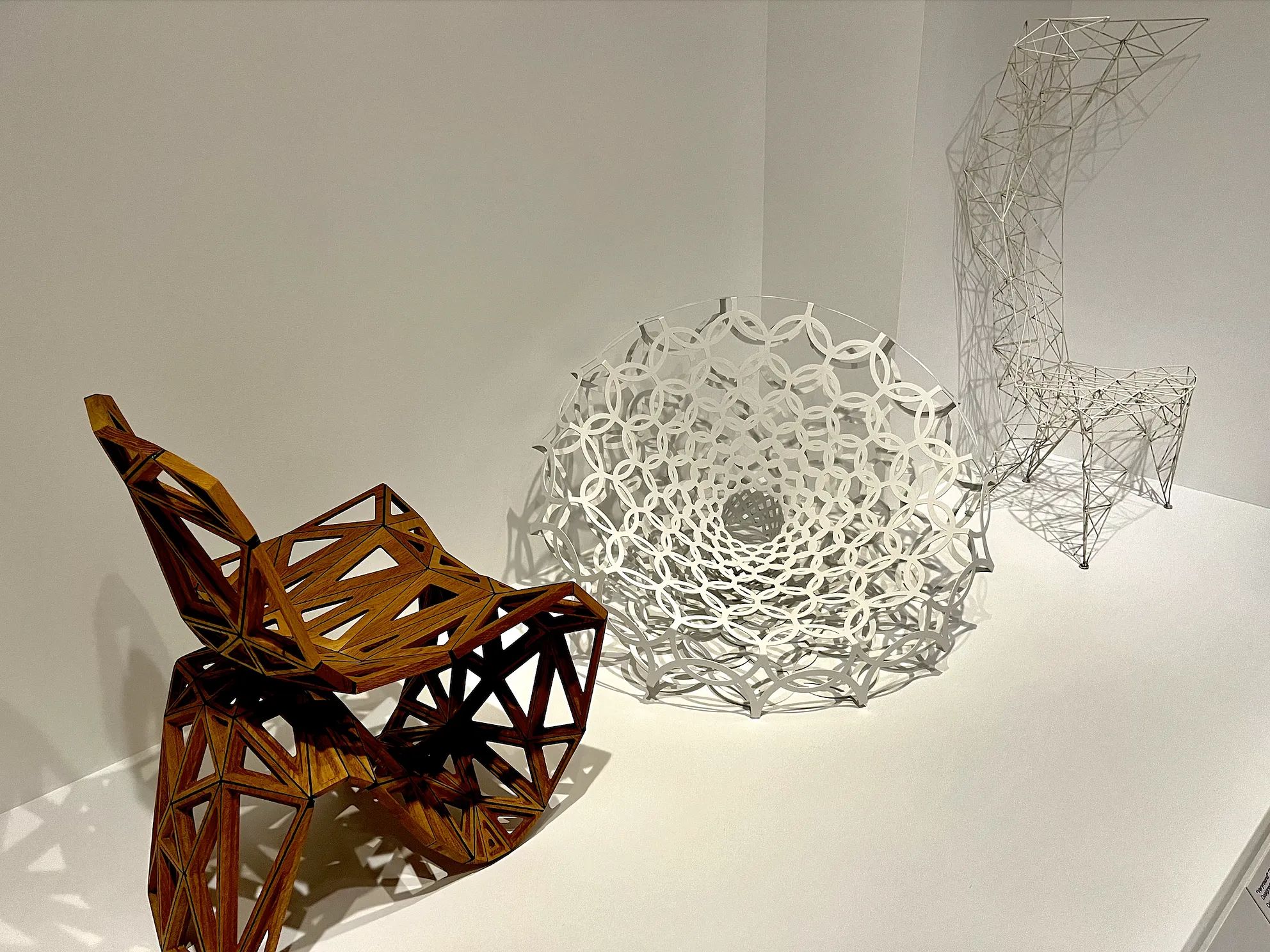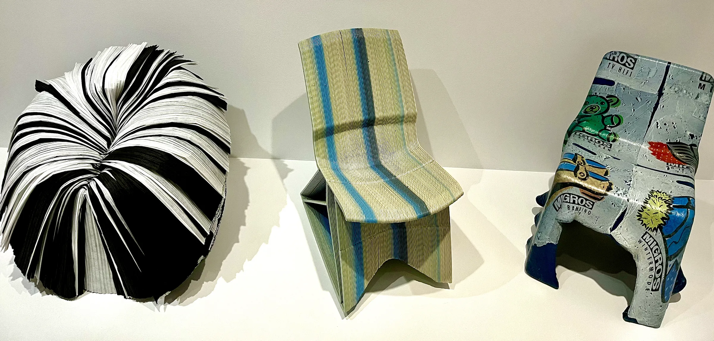 From reused clothes to fishing lines to laser cut wood, the materials warped into chairs as seen at PMA represent artistic breakthroughs and foreshadow the narratives of successful careers. The chair doesn’t have to be comfortable — it has to say something meaningful, whether that’s about culture, climate change, or technological innovation.