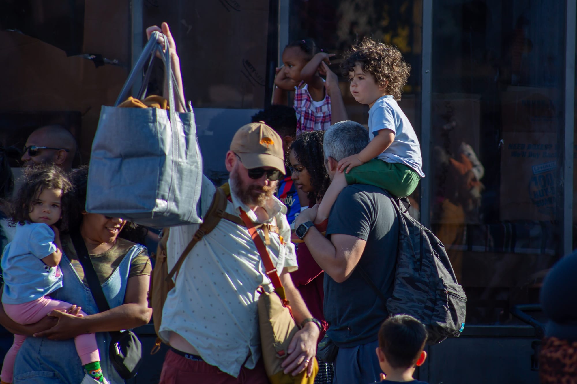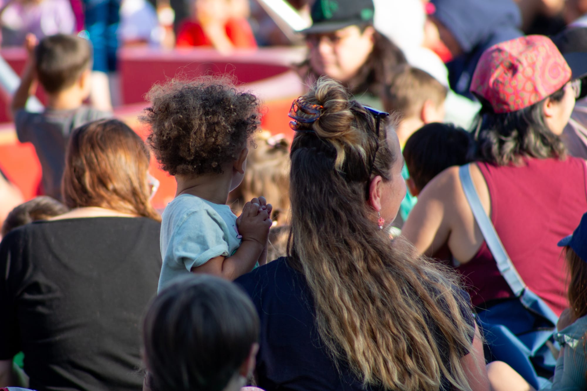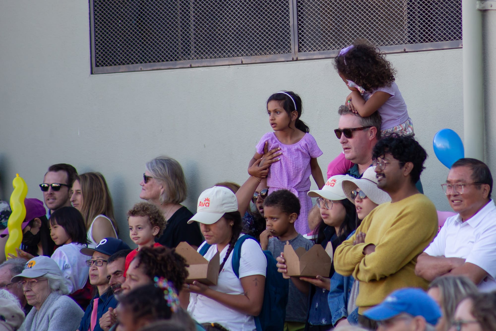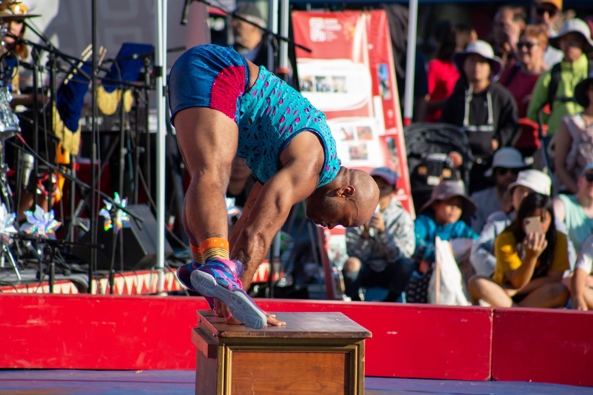 On this evening, as part of their summer series of free events in parks around the Bay Area, the company performed for an absolutely packed audience in Chinatown’s Lincoln Square Park. Attendees of every age stood, sat, and perched from the highest places they’d be held, for an hour-long show of colors, sequins, goofiness, and giggles.