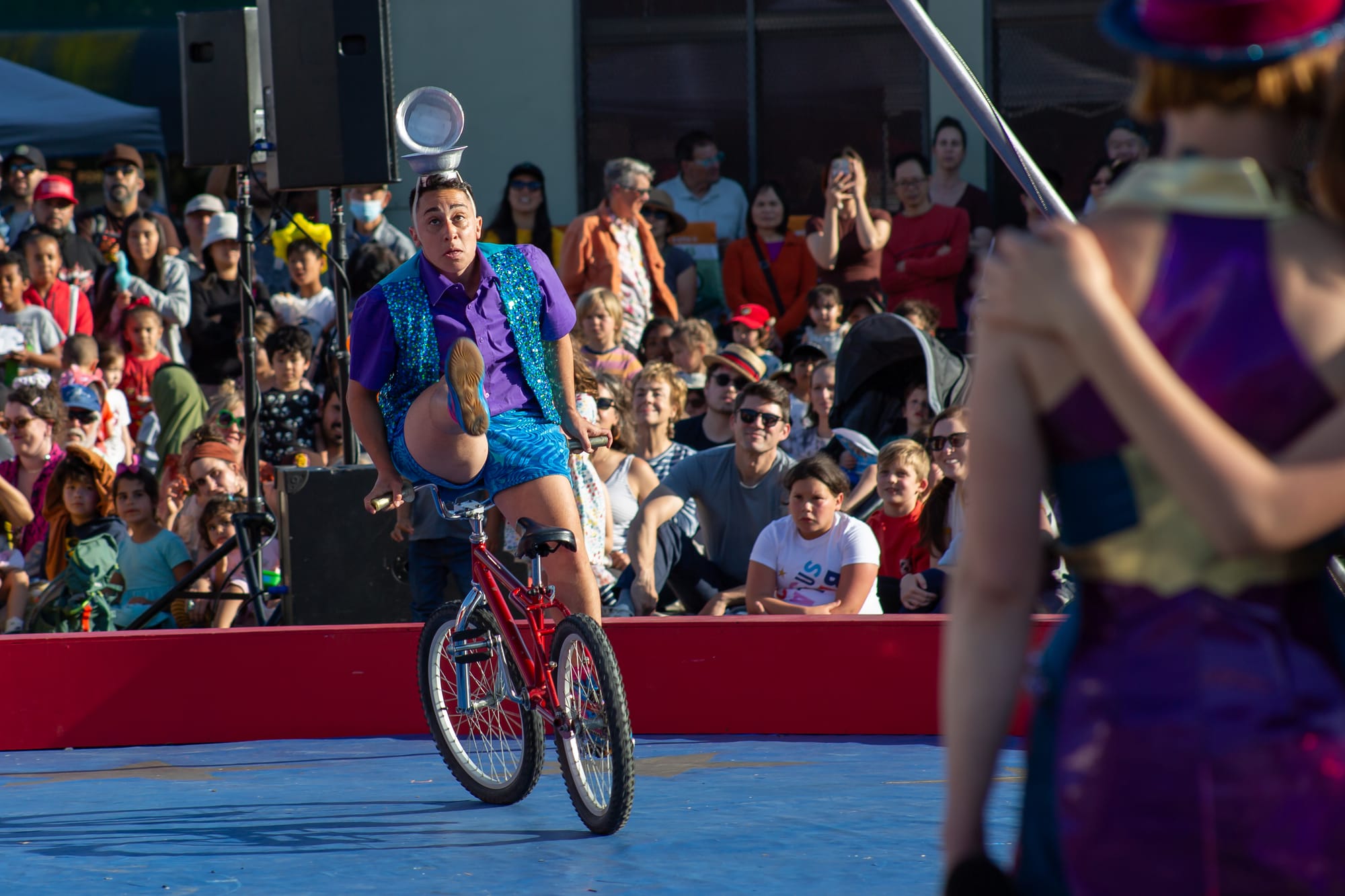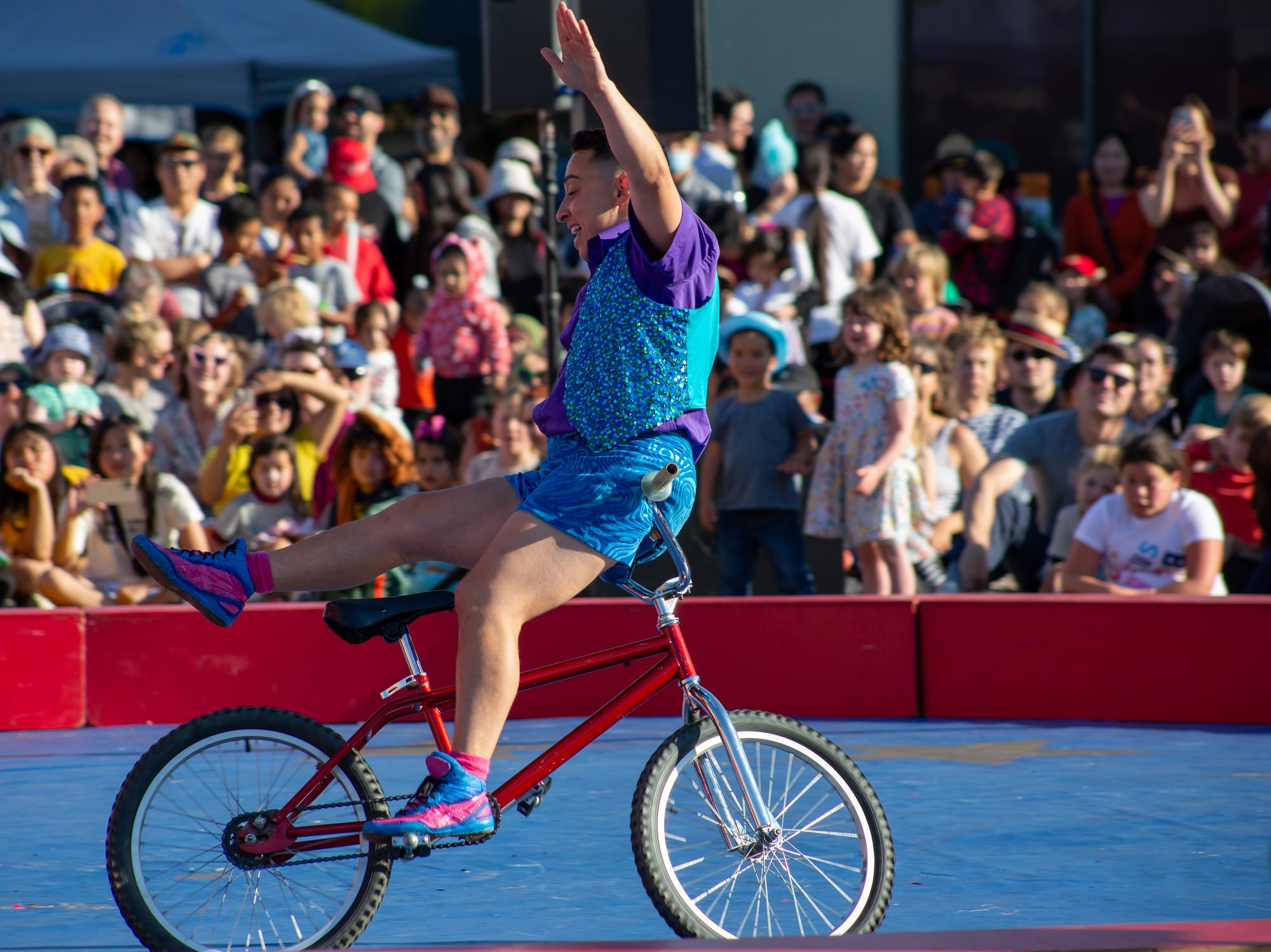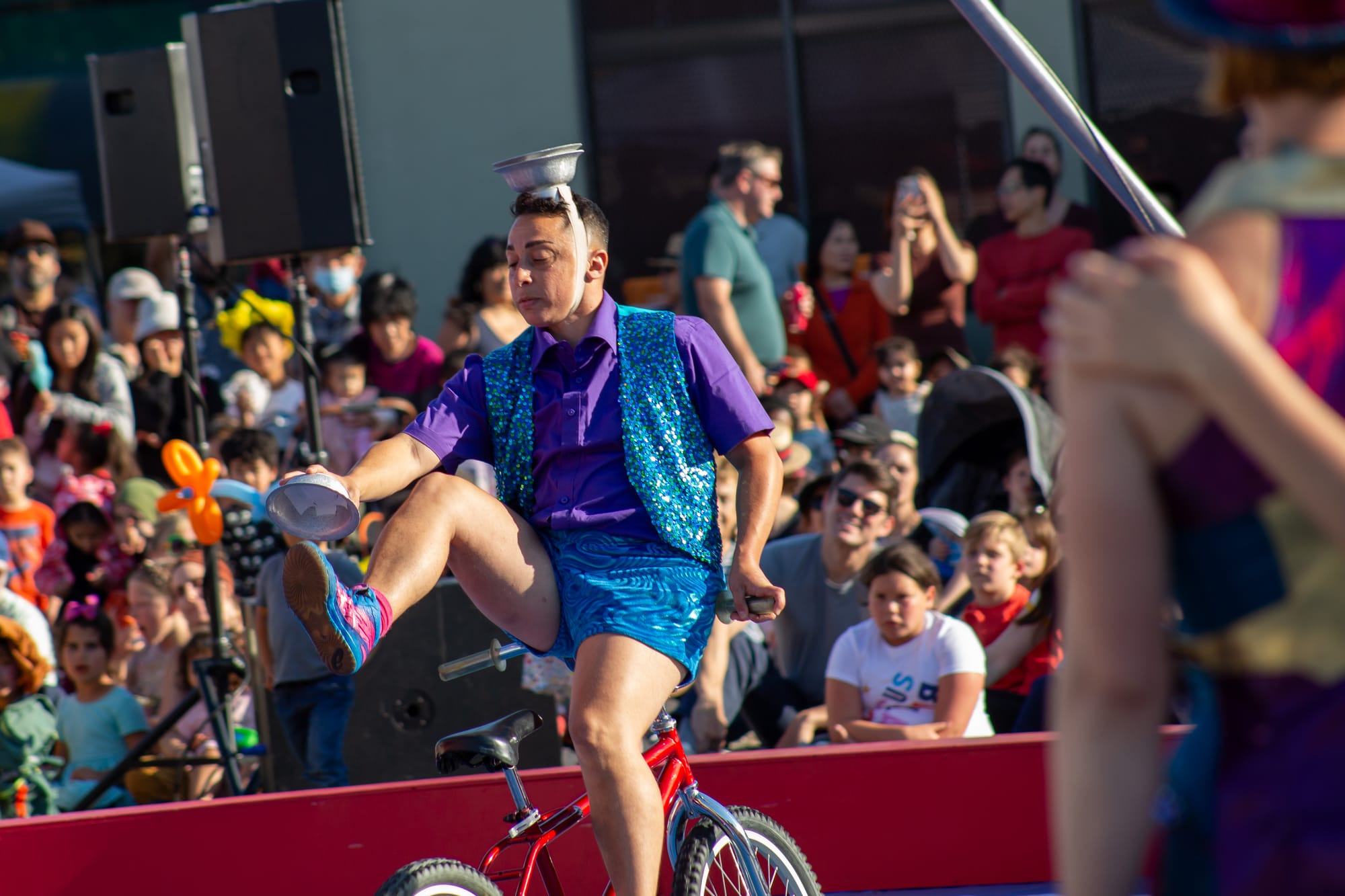 The crowd went wild for Ori Quesada’s rounds on a bike. Backwards and balancing bowls on his head, naturally.