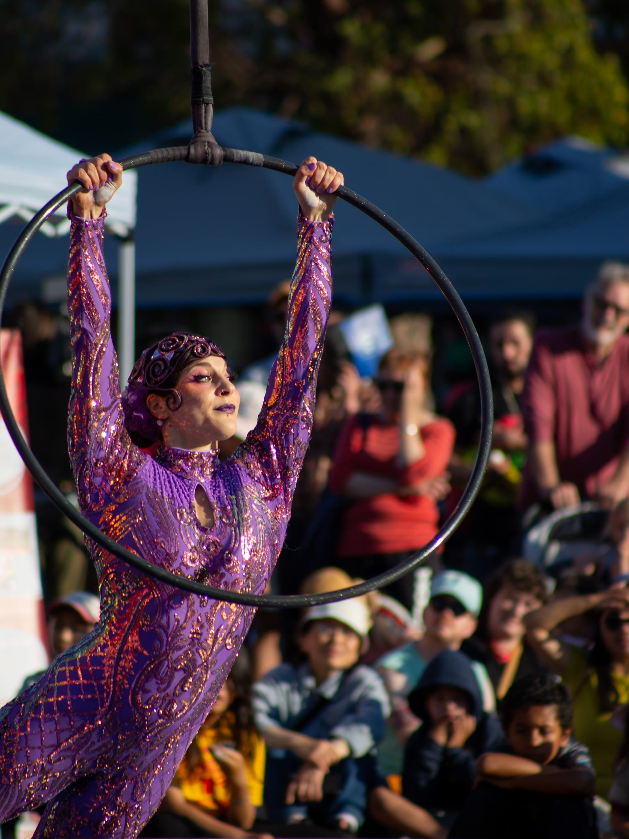 We could all use some more fun right now, some extra laughs. Throw in some sequins, sparkles, and a hoop or dozen and a uniformed six-piece brass band, et voilà! Circus Bella’s Circus in the Park! has made a stop near you.