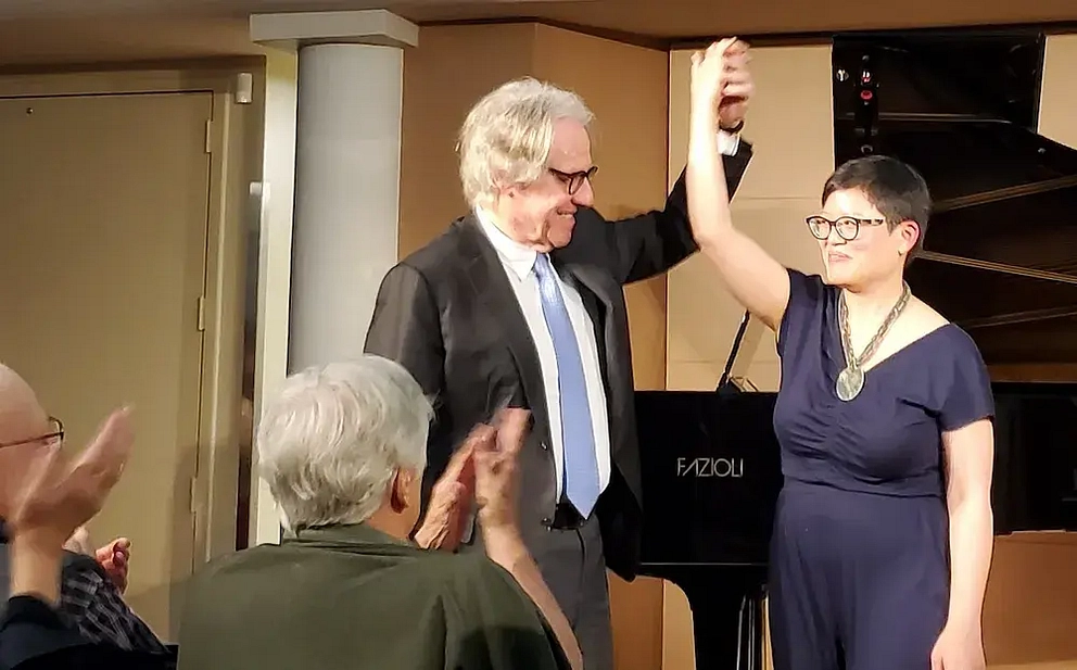 After the Q&A, pianist Monica Chew played a selection of pieces on the prized piano in question, an eclectic set by composers from Brazil, Nigeria, the Philippines, and herself. Though each piece was different in mood and style, the sound did seem to strike a different chord on a Fazioli, lifting itself up and through the room. It was a beautiful, sonorous racket, a gilded canvas blanketing the audience in Afro-jazz and Bach and percussive tremors and chamber music.