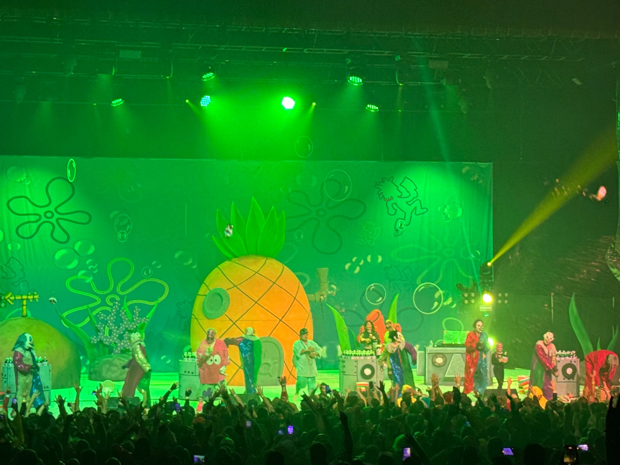 And Insane Clown Posse does not mess around when it comes to their productions. When I first went a couple years ago, the set design was very “horror movie set near a haunted barn in the middle of nowhere.” This year, it feature a bounty of color as ICP (Violent J and Shaggy 2 Dope) lifted the curtain to unveil a complete recreation of Bikini Bottom, the town of Spongebob Squarepants.