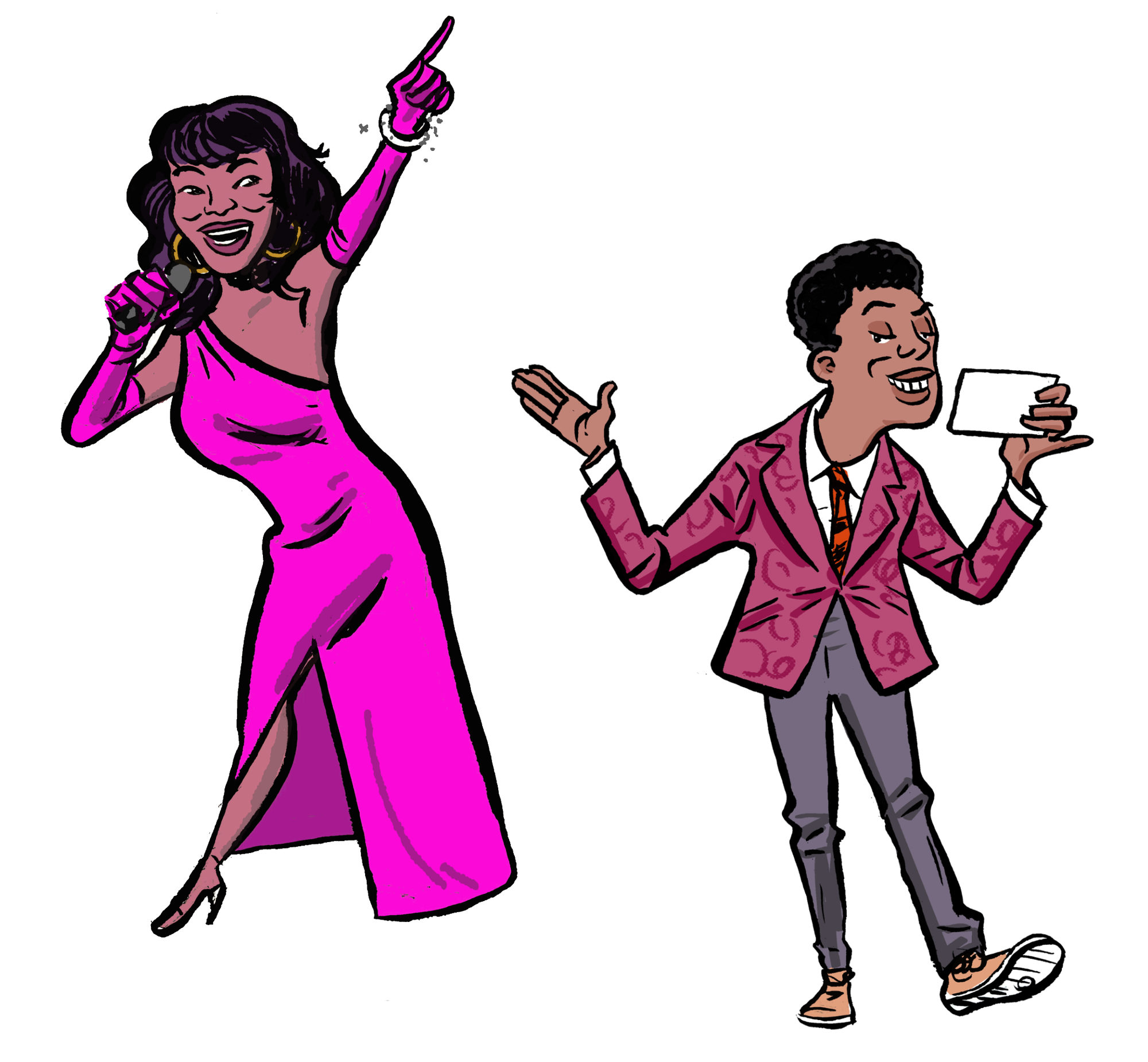 It was a high-energy environment, which routinely broke the fourth wall. The set was reminiscent of a '70s game show, with a massive analog television at the back of the stage. Logos and clips were projected onto the TV screen, which was a scrim of sorts. Periodically it revealed live action movement and dance from performers inside.