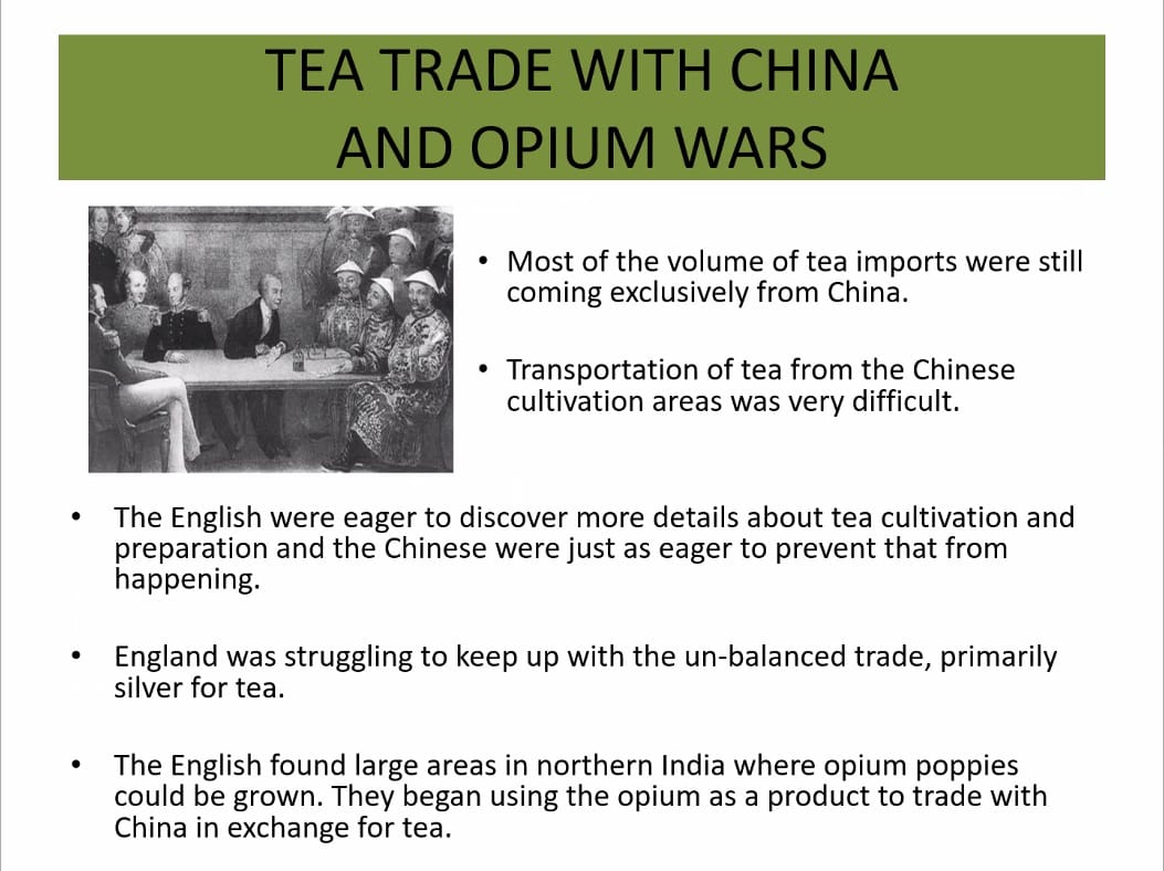Beaudette explained though that the formation of the United States of America isn’t the only world-historic event that was galvanized by tea. After the British colonization of India, the English gained access to India’s opium production and began to trade opium with the Chinese in exchange for tea. Chinese attempts to resist the flood of opium into the country led to the Opium Wars, the opening salvo in what the Chinese would eventually call the “century of humiliation.”