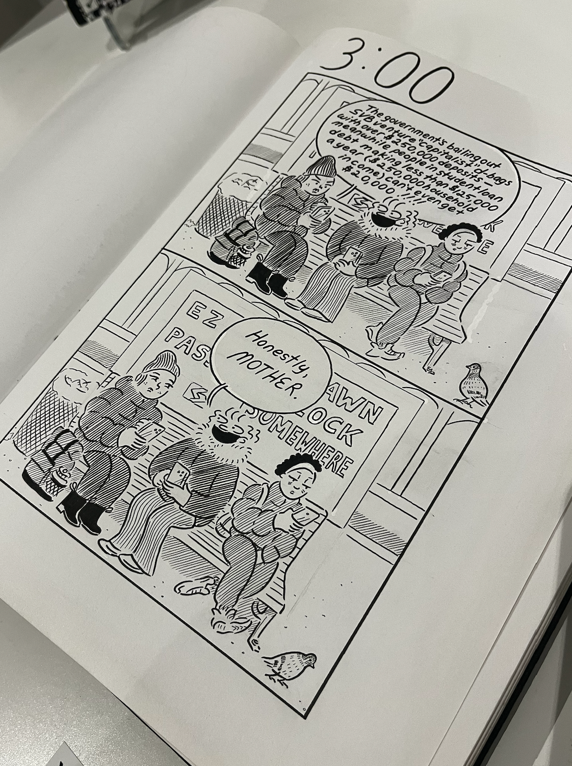 Beyond short artist biographies, the only guided text we get is a great quote from exhibiting artist Sally Madden: “As an art form with so few dollars at stake and even less prestige, the comics scene here has little to feed itself aside the momentum from the desire to create.”