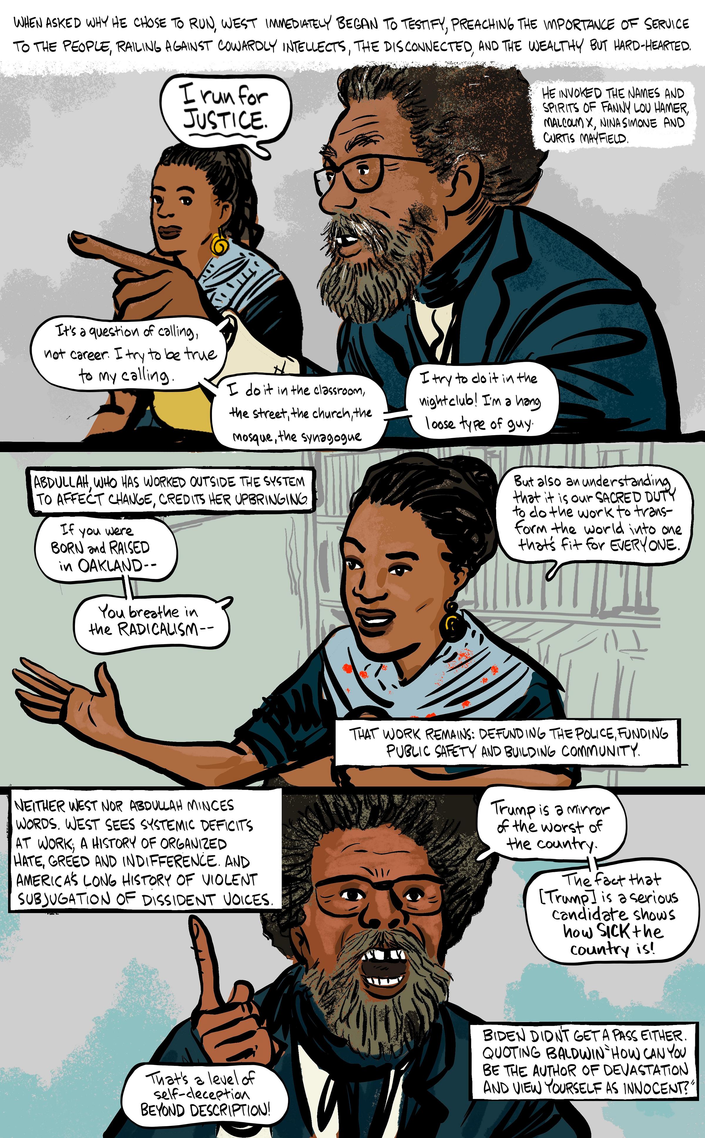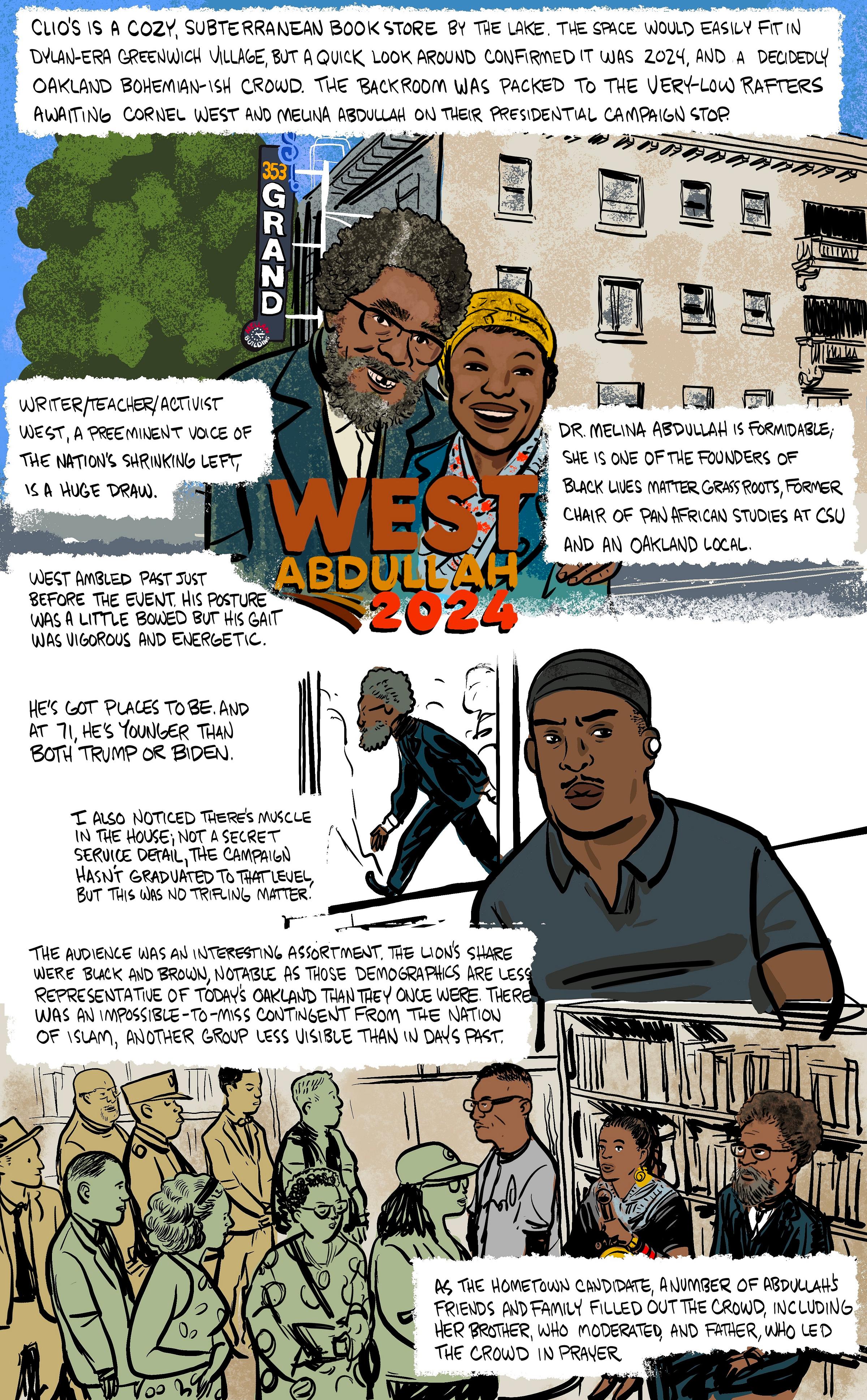 Presidential hopeful Cornel West and running mate Oakland local Dr. Melina Abdullah in conversation at Clio’s Books.