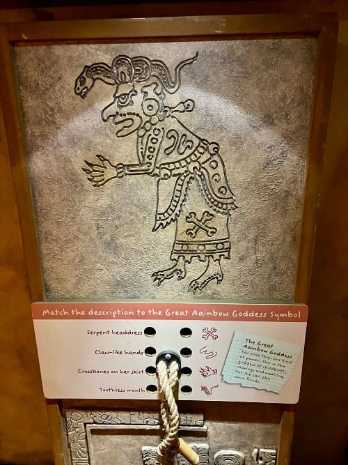 Other parts of the exhibit included ancient temple ruins and a sarcophagus with activities to help you notice details within the hieroglyphs and identify their meaning. Decoding the hieroglyphs eventually leads you to the final task, where you select the accurate combination of hieroglyphs to locate the medallion.