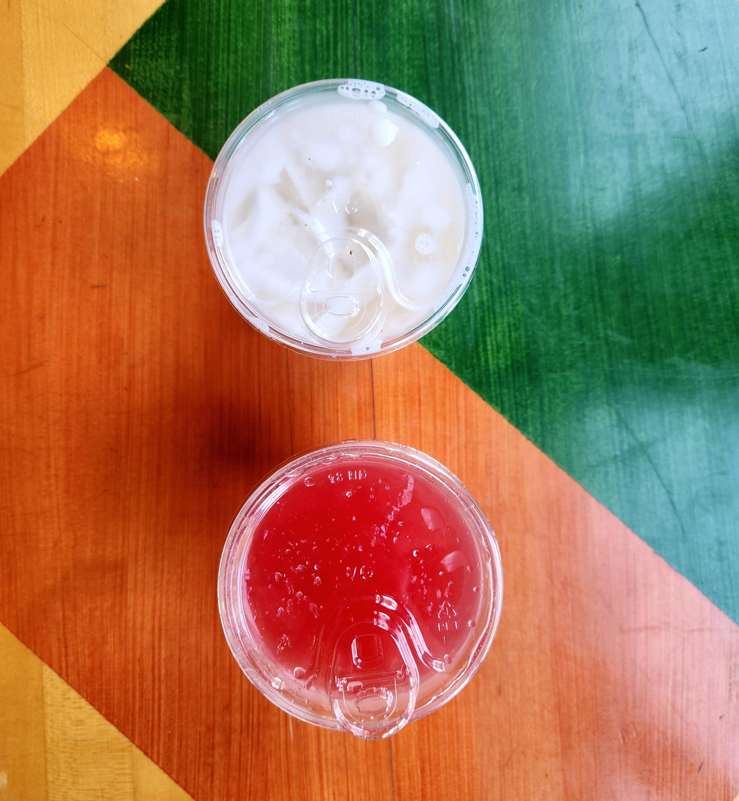 If the anticipated plates of corn and beans and cheese and salsa were not enough, we also got drinks. A small selection of bottled sodas and beers were on offer, but we looked straight to the huge jugs of horchata and agua fresca behind the counter — the former for Emily and watermelon agua fresca for me.
