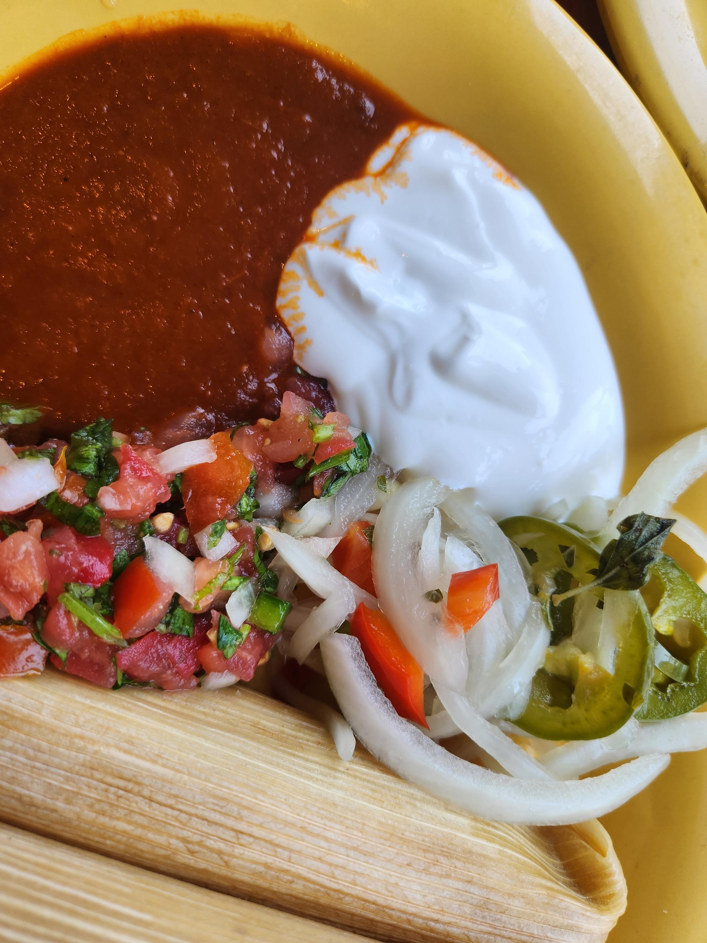 The talales, however, were something special: the masa perfectly soft and creamy and salted, complementing the sweet toothy corn kernels and spiced filling. The plate was filled to the brim with pico de gallo, salsa de arbol, sour cream, jalapeños and onions, and these provided more juiciness, crunch, and kick to set off the soft and creamy fillings.