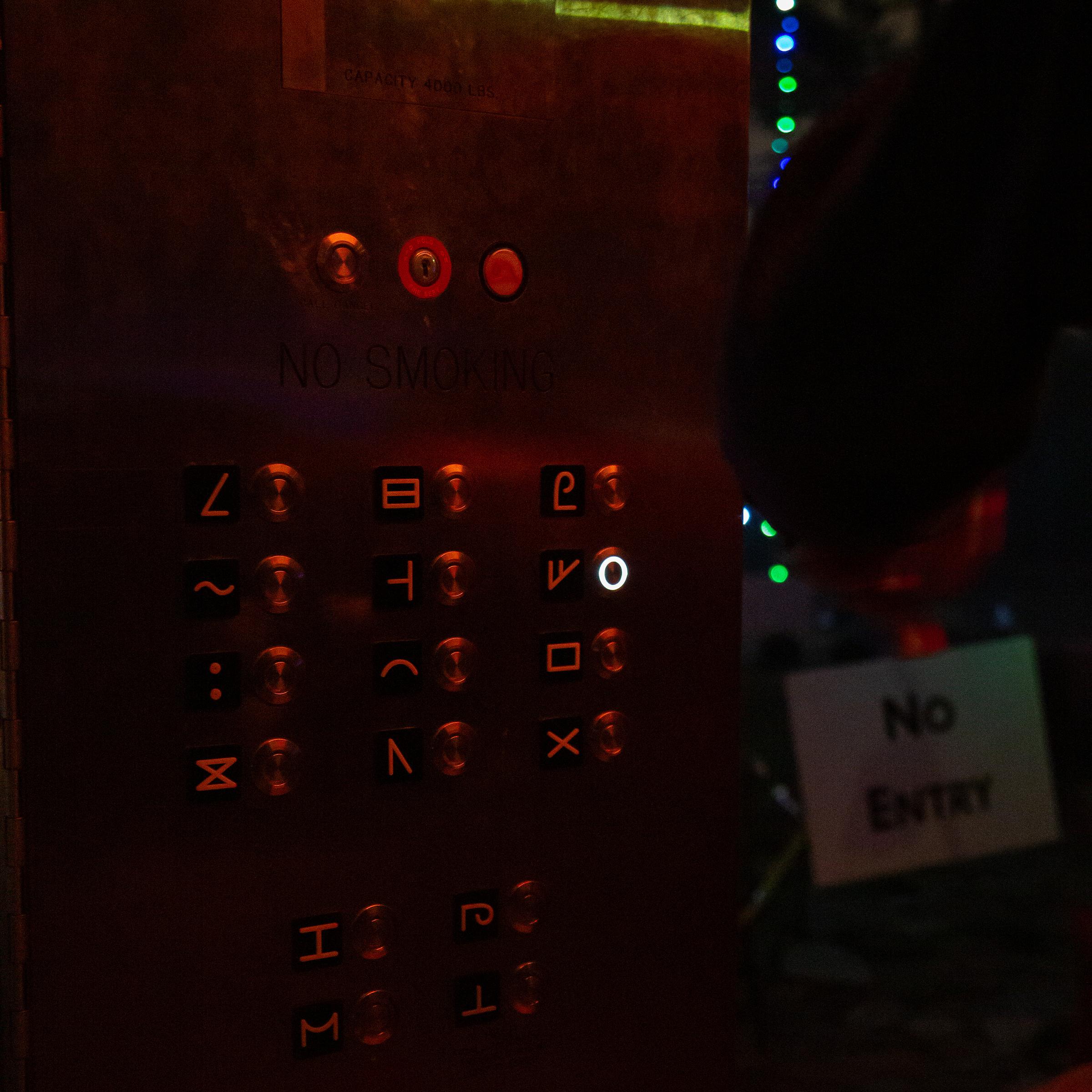 Nearby, a shell of an elevator to nowhere stood, its panel of buttons a series of cryptic runes. Entitled “Lift Away” by Ellen Juhlin and Justin Oliphant, it also gently chimed when provoked, suggesting the use of a different button or, perhaps, impending doom.