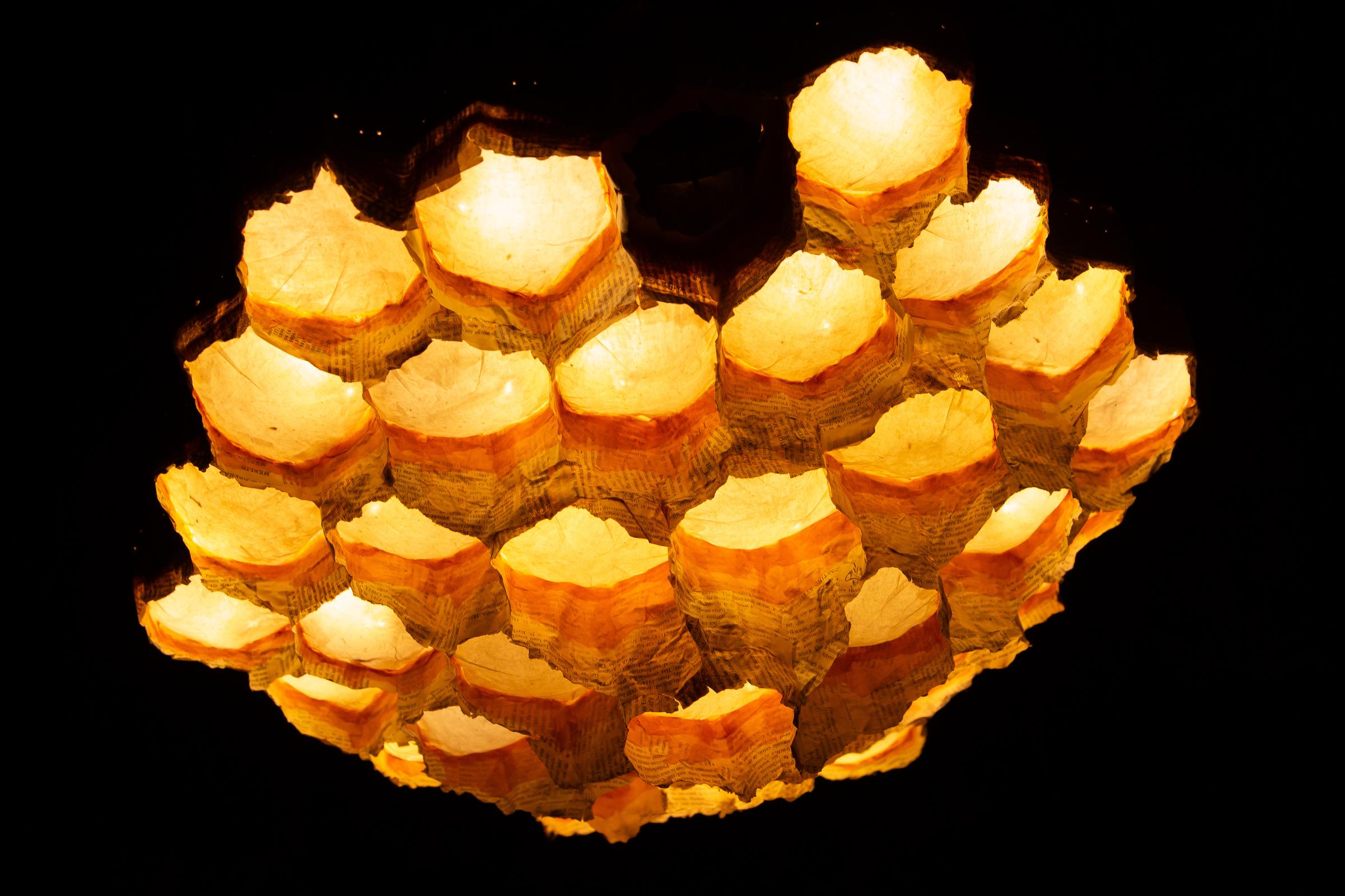 A small grove fitted with benches and strung with paper machè botanicals was emitting noises. That wasn’t the strange part. But I just needed to figure out what was the chanting of the ants, buzzing my head full of critters.