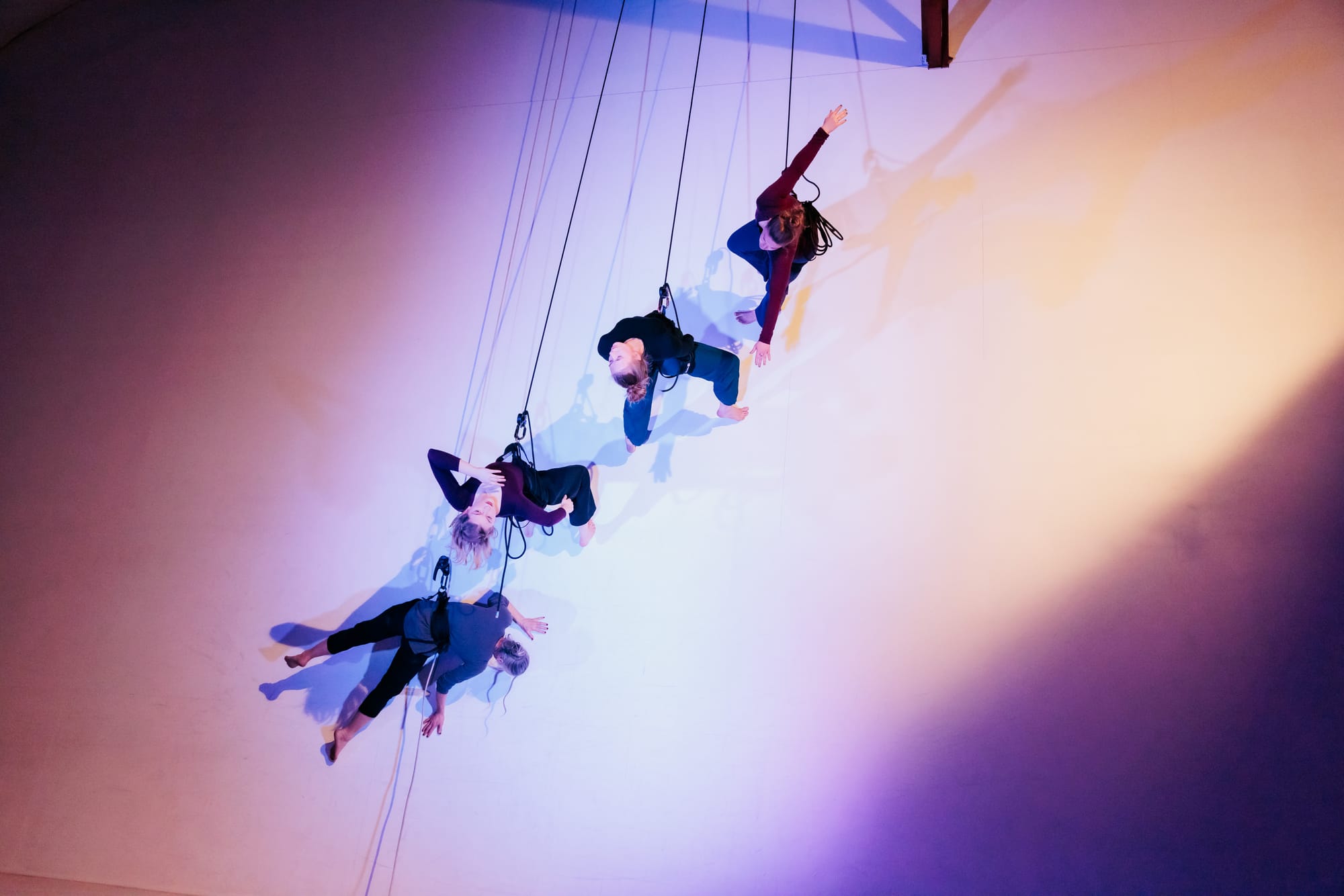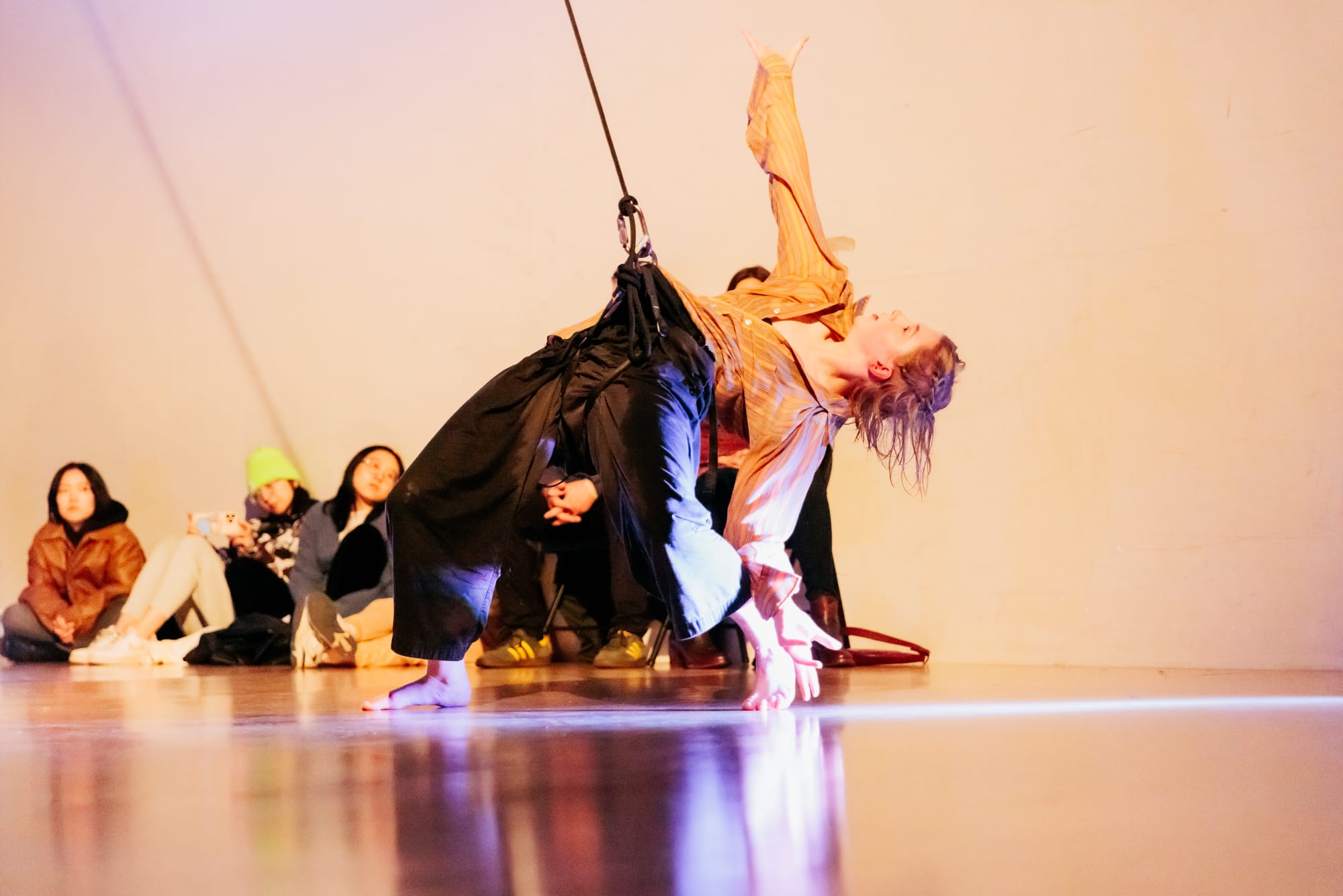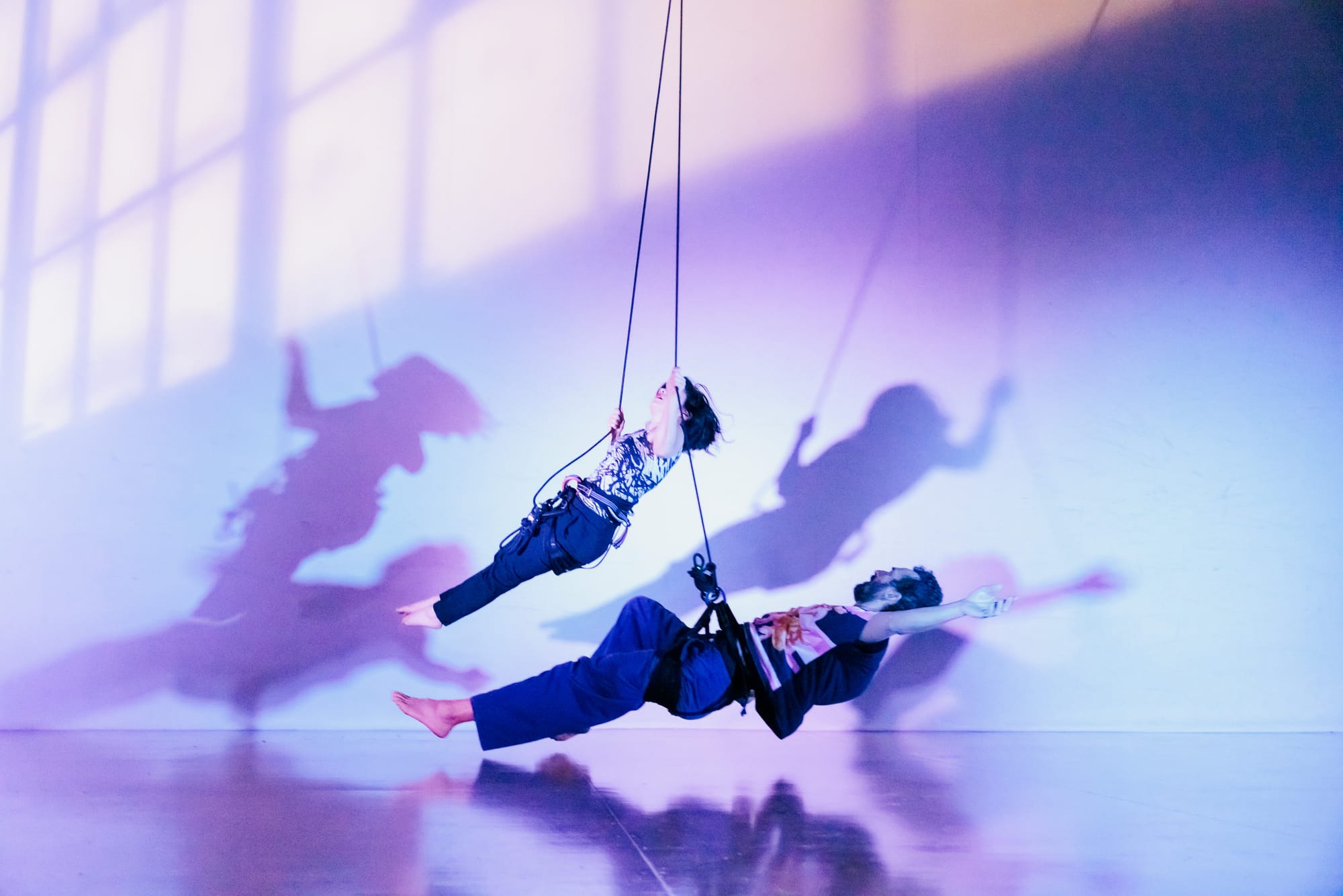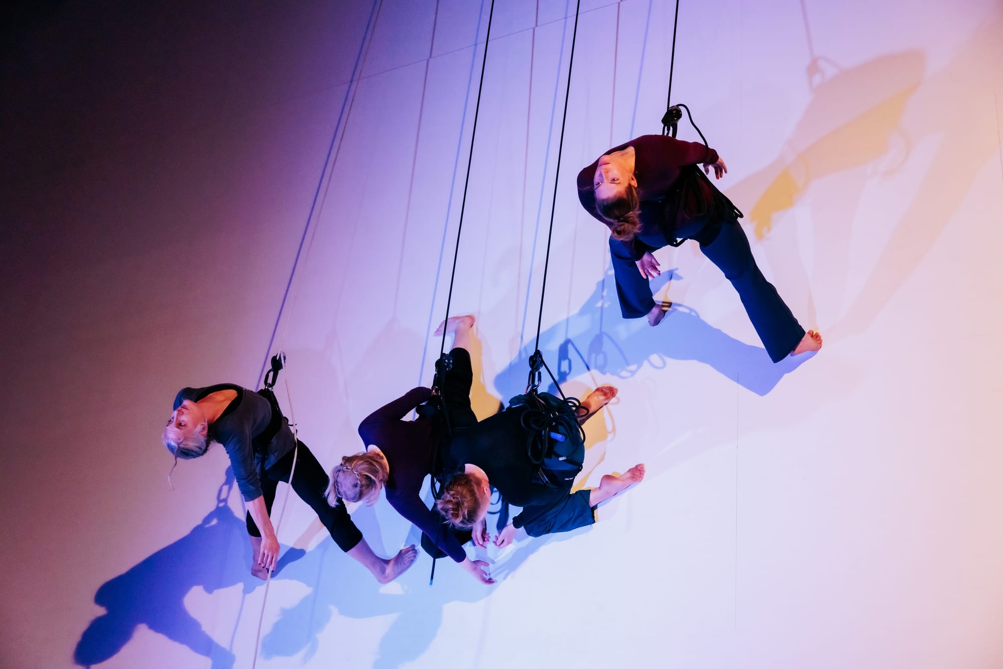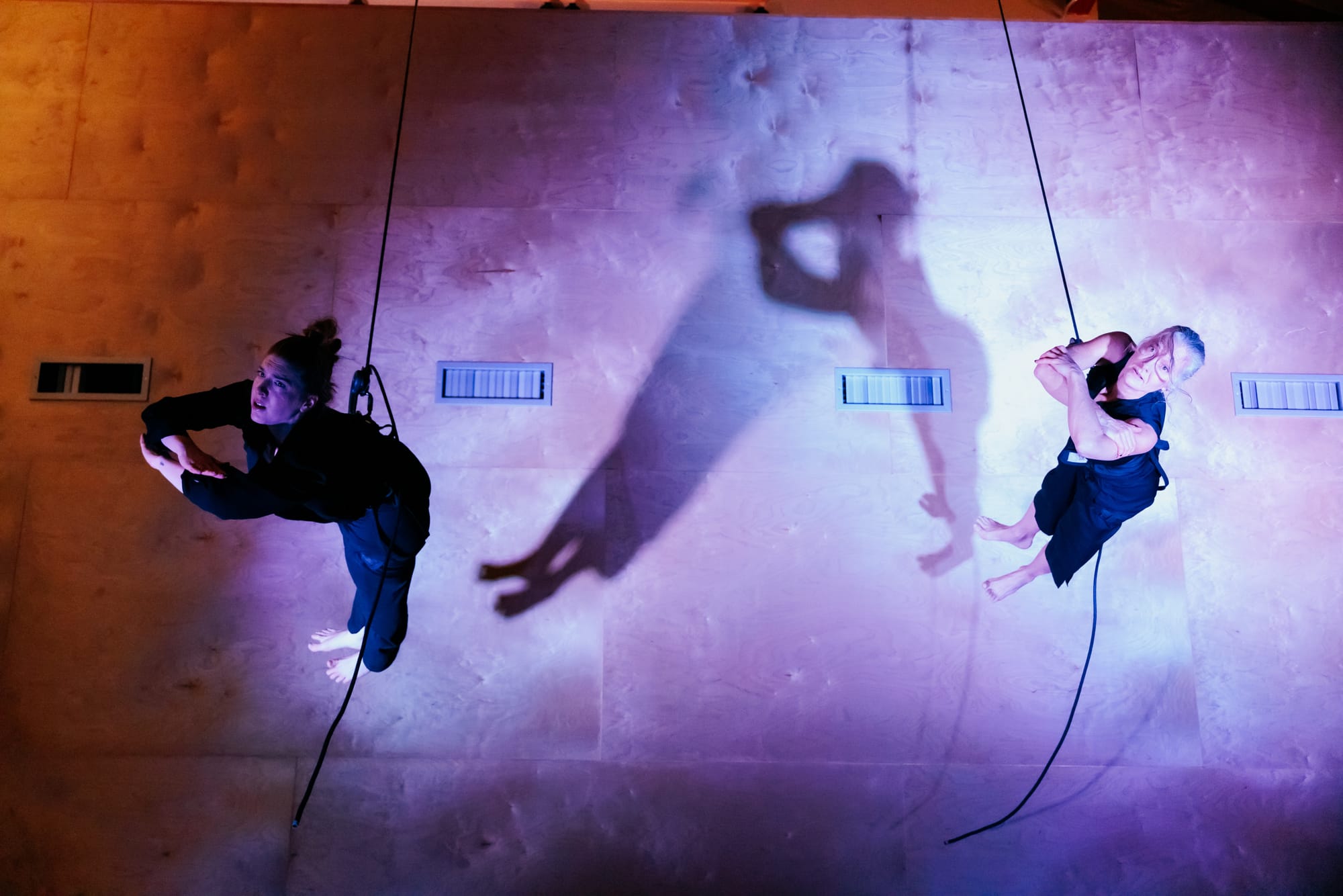 The final piece of the evening, Colliding Topographies by Megan Lowe and Roel Seeber, was an electrifying showcase of trust and skill. Flying laterally across the floor, Lowe and Seeber appeared locked in a battle, their bodies entwined in a series of swift, passionate movements. The two dancers circled each other in constant motion, their synchronization remarkable. As Lowe herself remarked, “There is such deep physical trust and listening in this vertical dance partnership between Roel and me—like tendrils, our awareness extends from ourselves, connecting to each other, and radiating out into the space around us.” Their collective experience with vertical dance was evident, their every move flowing seamlessly into the next. Amazing since they have only been working together since May 2023.