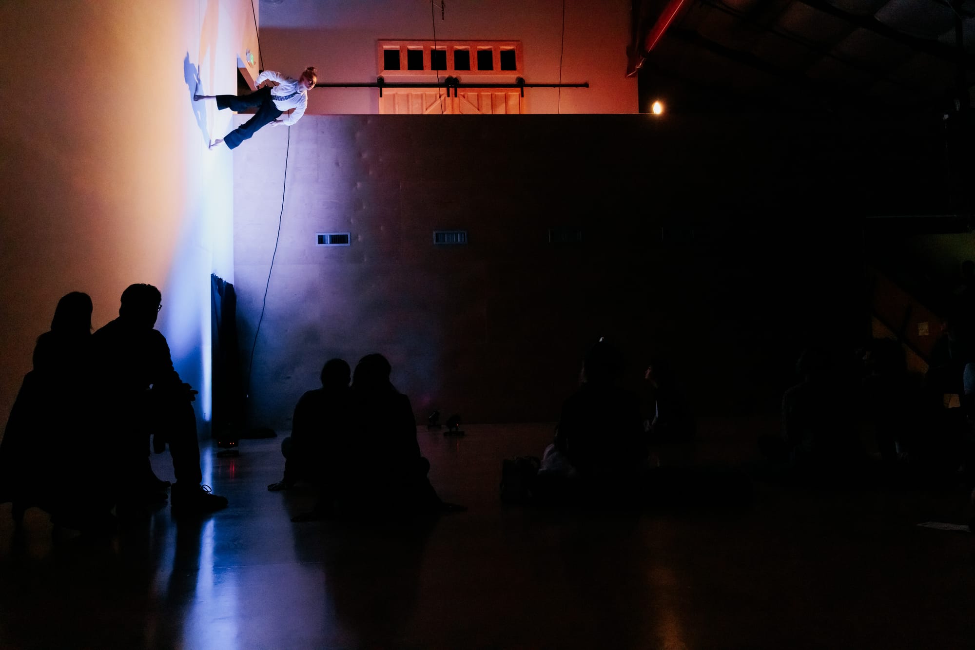 On the heels of a tornado warning that left the Bay Area a little unsettled, I made my way to BANDALOOP Studios for their Emergence showcase featuring many of their teachers. A self organized event developed in their Artistic Research meet-ups (which BANDALOOP Studios provided space for) and their own rehearsal processes. The AR team also calls themselves "The Rebel Alliance. on December 14, 2024. Founded in 1991 by Amelia Rudolph, BANDALOOP Dance Studios have long been a cornerstone of the Bay Area dance scene. Known for their unique fusion of rock climbing and aerial dance, Bandaloop's mission under artistic director Melecio Estrella is clear: to "honor nature, community, and the human spirit through perspective-bending dance." The dancers often propel themselves down the sides of buildings, springing from walls in elegant formations. It’s poetry in motion—dancers seemingly suspended in controlled flight.