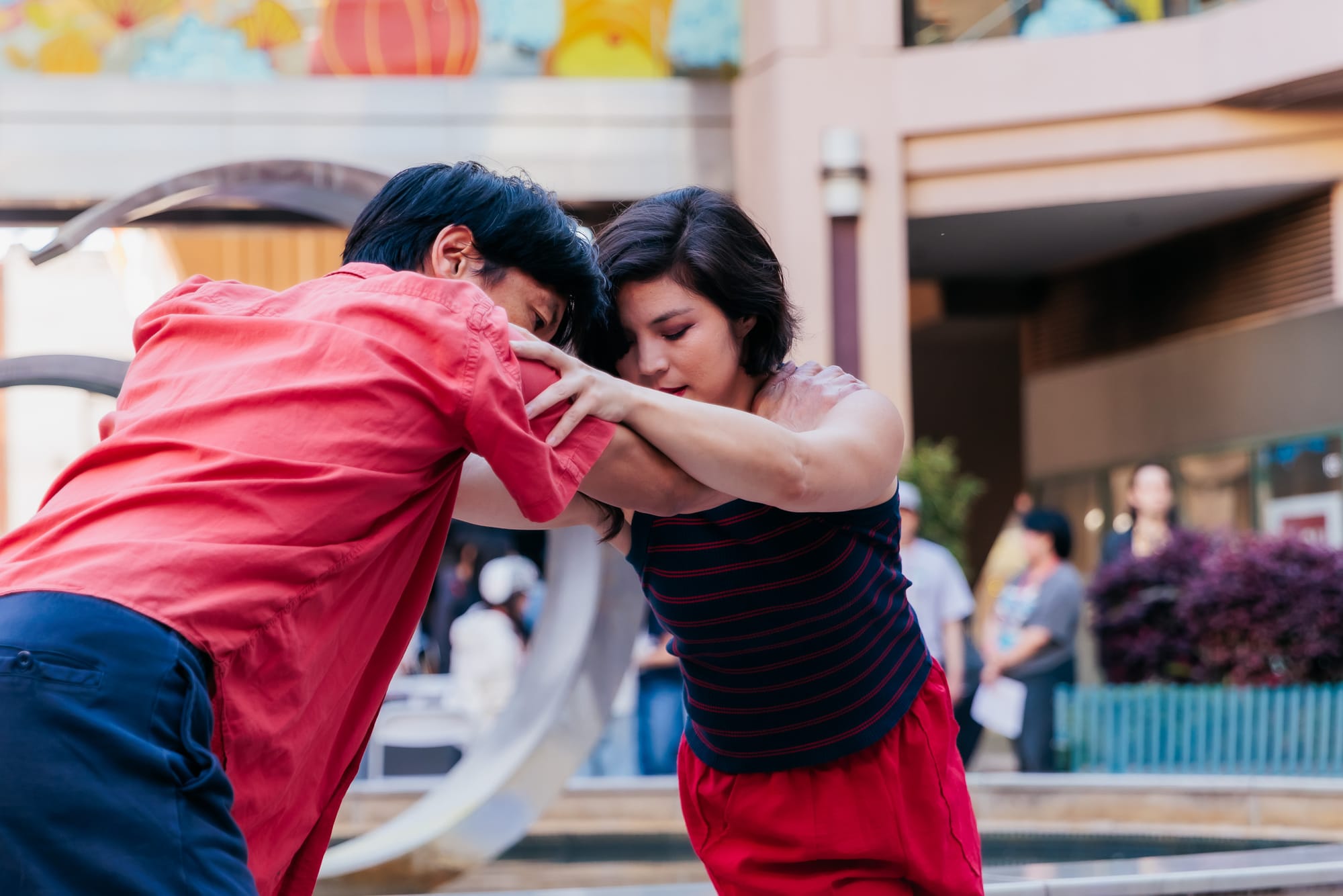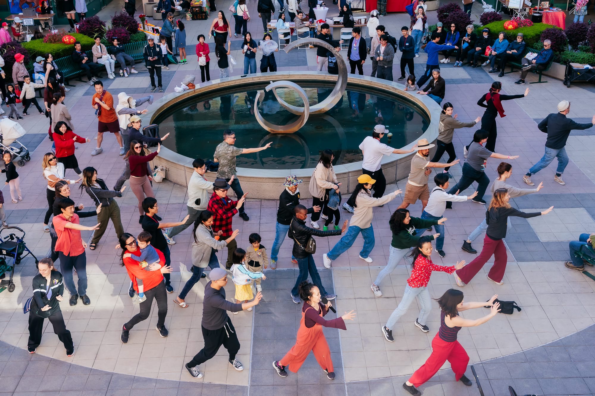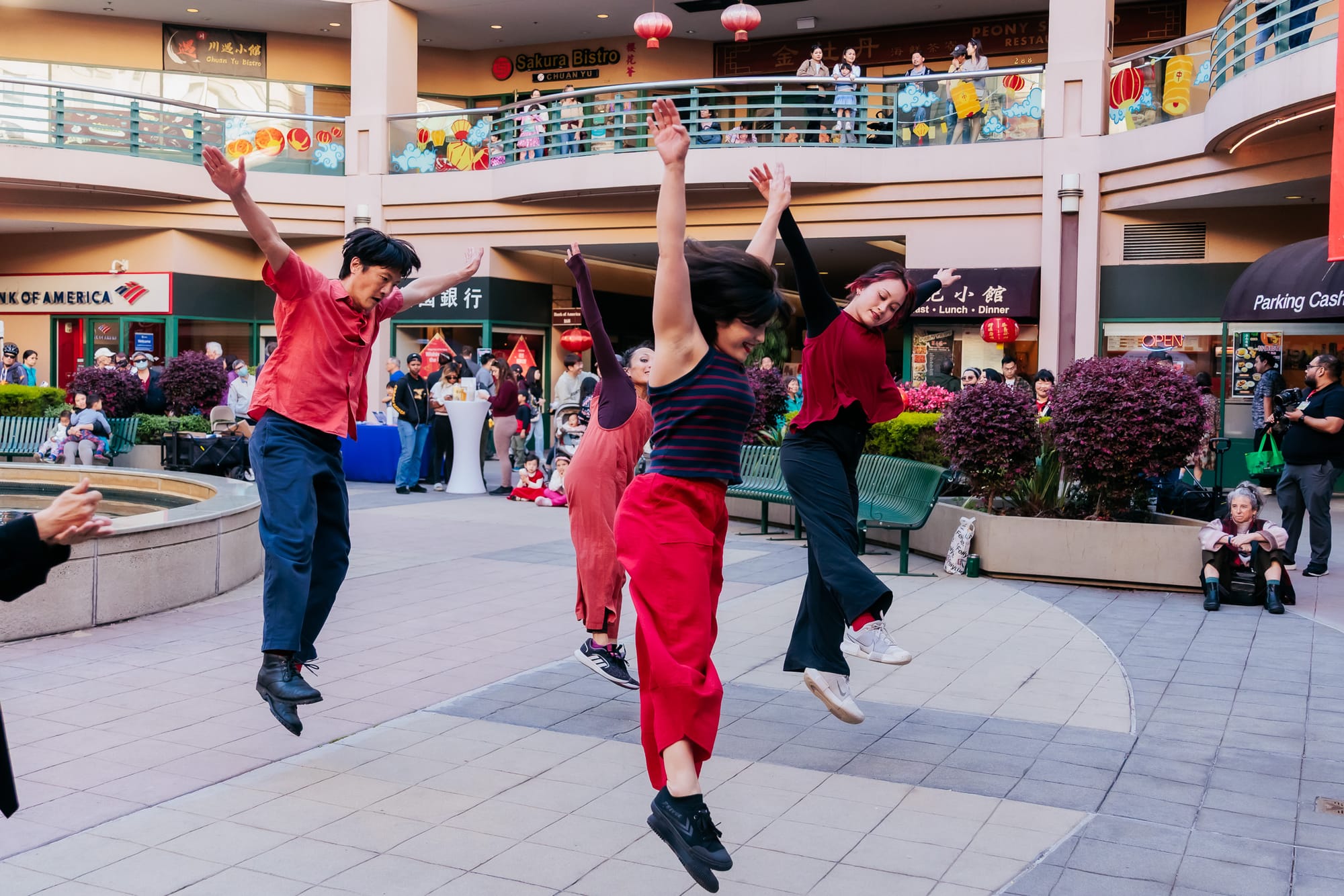 The Lantern Festival for the Year of the Fire Horse began with joy, dance, and song, all courtesy of Megan Lowe Dances, or MLD. This company has a gift for transforming spaces and the ordinary everyday objects in them, like benches, in this instance those of the Pacific Renaissance Plaza, into a dynamic landscape of athleticism and art.
