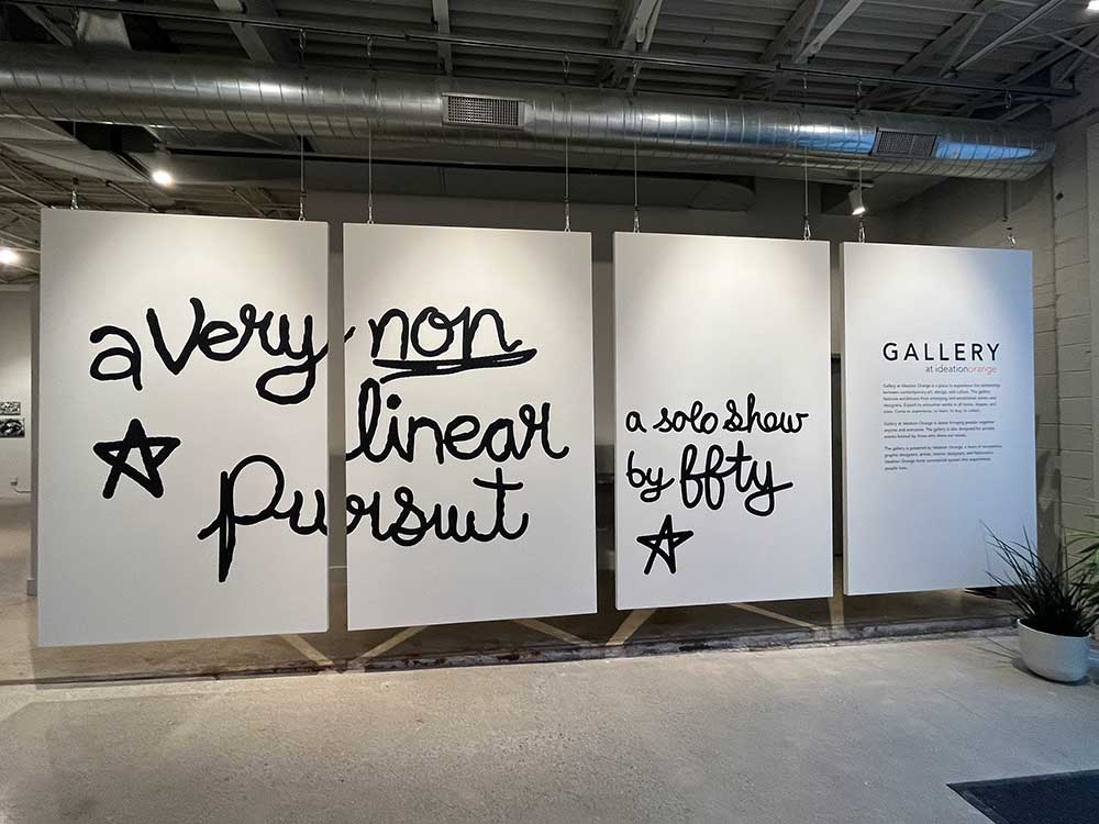 The name “A Very Non Linear Pursuit” made me believe that this show might feel chaotic or disjointed. That assumption was far from the case, morphing in different directions quickly as I stepped inside of Ideation Orange’s gallery space.