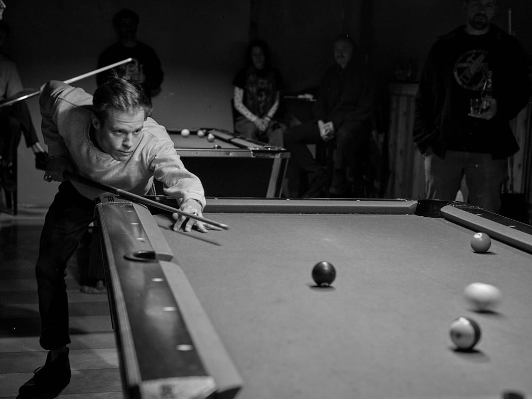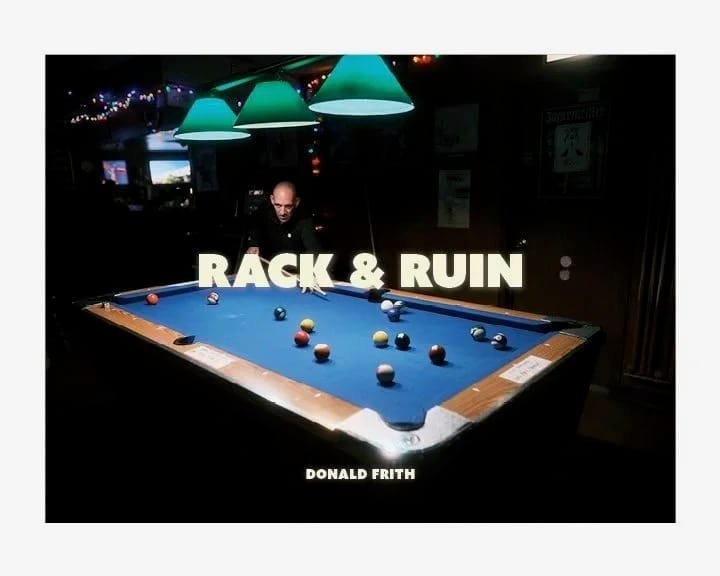 In his 100-page photobook “Rack & Ruin,” photographer Donald Frith set out to document the scene with his camera and self-release what he captured through his lens. It’s an ode to the bars these tables live in and the players who love playing there, and a love letter to the aesthetic of the Midwest bar scene.