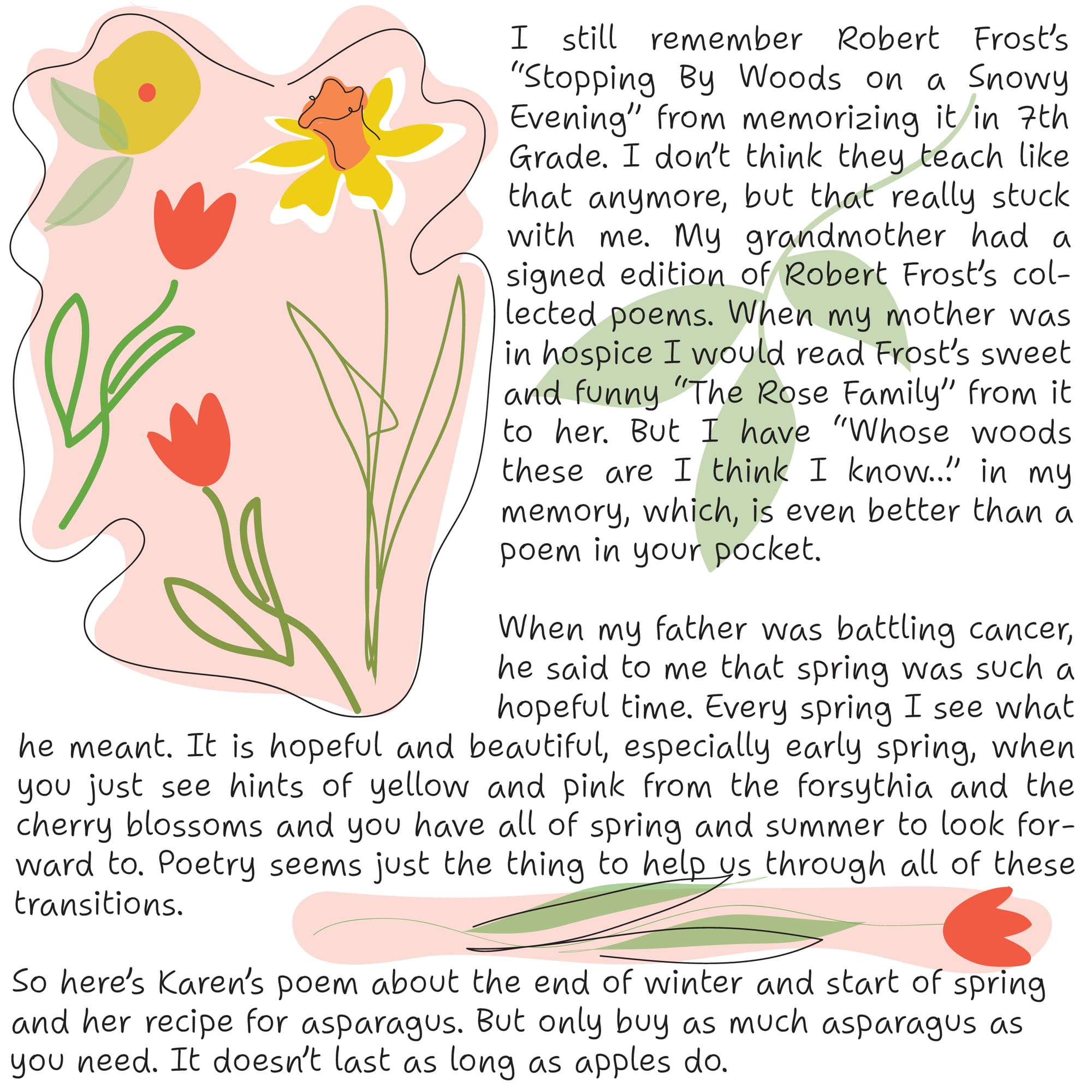 New Haven Of Spring Stalks & Stanzas Liz Grace gets versed in seasonal poetry and how to make garlic roasted asparagus. Liz Grace 15 Apr 2026 · 1 min read