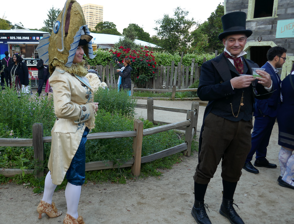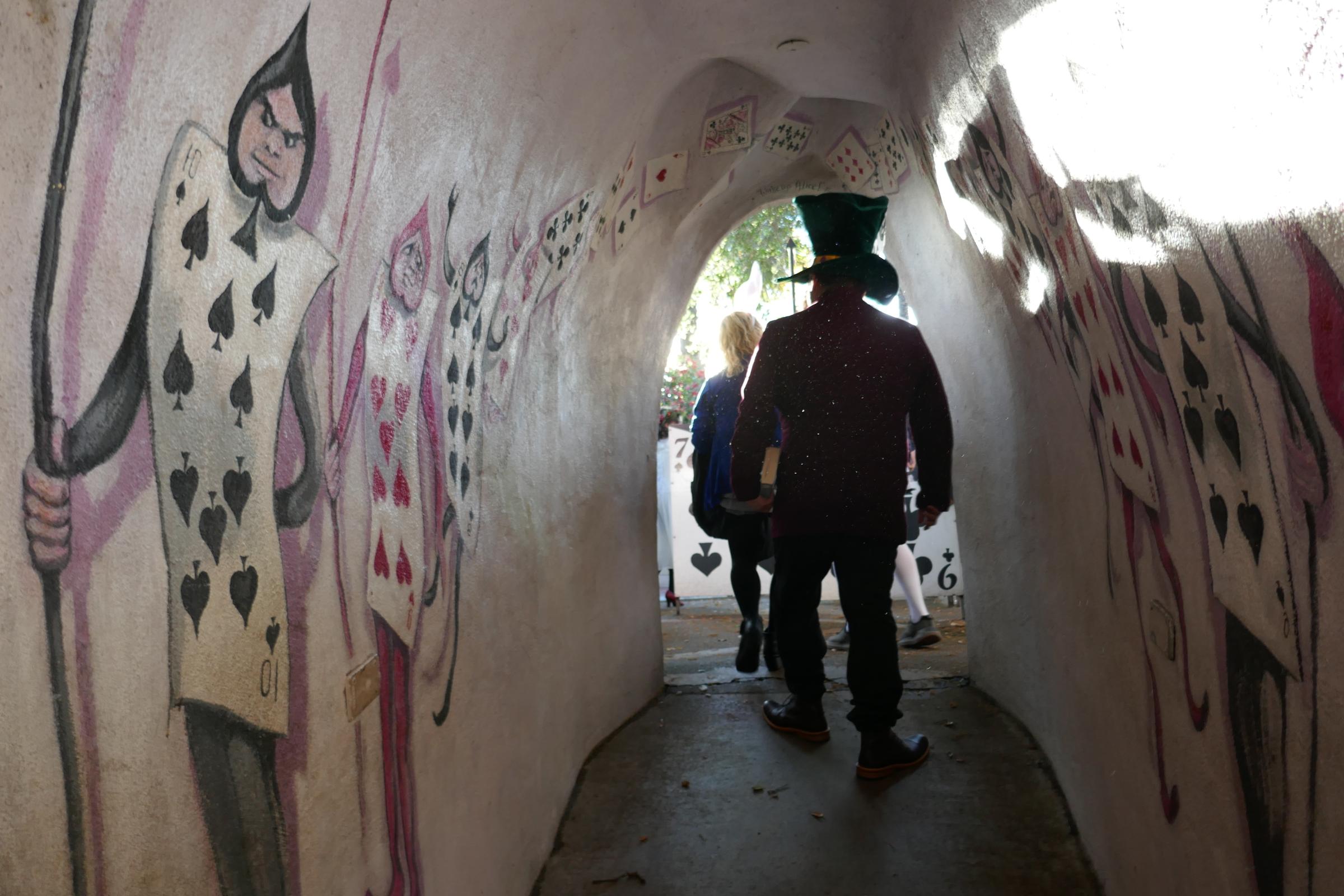 With a little maneuvering, Dorothy managed to escape. Meanwhile adults in all manner of cosplay — DIY steampunk suits, Alice in Wonderland-themed dresses, cat costumes — gamely tried to wriggle themselves down other slides, ducked their heads through tunnels and mazes, and squeezed through the tiny gates of the toy train cars that wheeled slowly around the park.