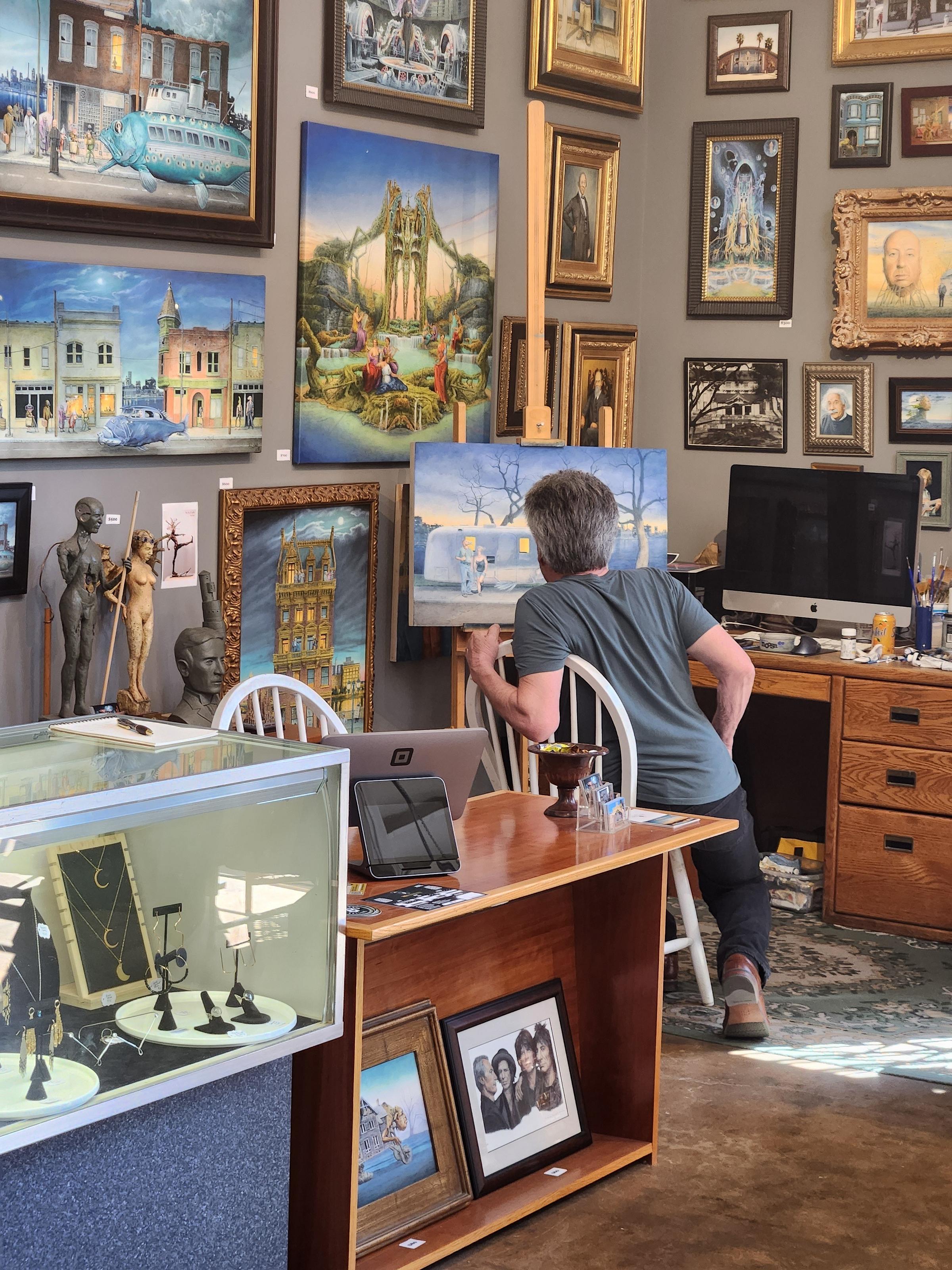 The range in scale of Weber’s works, from tiny, twisted portraits to stories-high murals, is mirrored back on the walls, tables, and studios of the gallery. Though his phone number is listed on the (sole) landing page of the gallery’s website, I was still surprised to find him tending till. Visit the gallery to check out the rotating shows, with a monthly featured artist and opening first Fridays and Saturdays, weekly from Tuesday to Sunday from 11 – 5.
