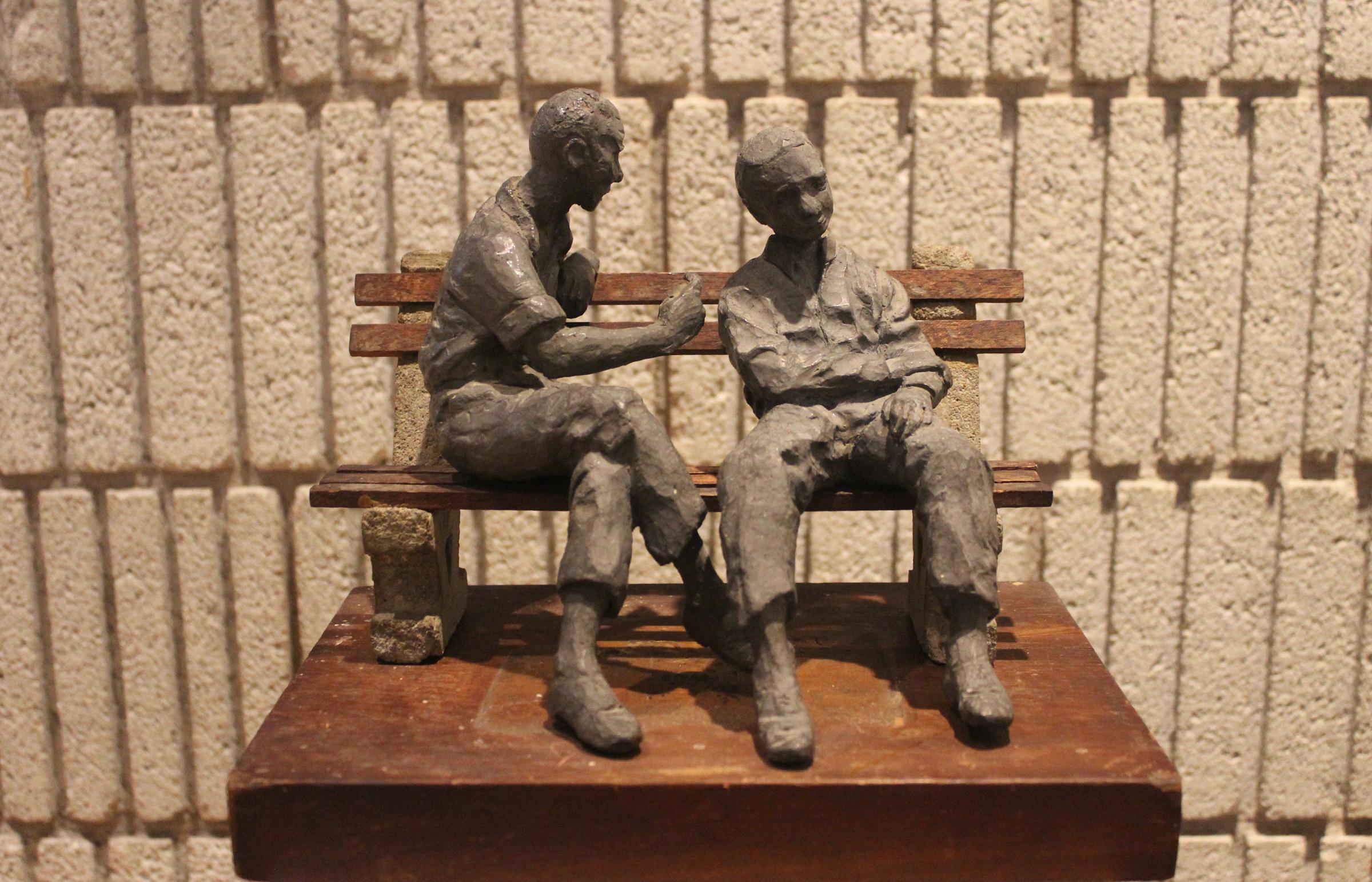 The two friends in Ann Lehman’s sculpture — we only know they’re friends because the title tells us so — appear as though they’re deep in the middle of a long conversation, one that started long before we arrived and will continue after we’ve gone. One is perhaps trying to convince the other of something. He’s pressing his point. The other isn’t convinced, but he’s hearing the argument out. It’s happening on a bench that could be in any public park. In short, it’s a definition of community: people coming together in an open space, exchanging ideas, listening and speaking, challenging one another knowing that the friendship is stronger than any argument, that the bonds between people matter the most.
