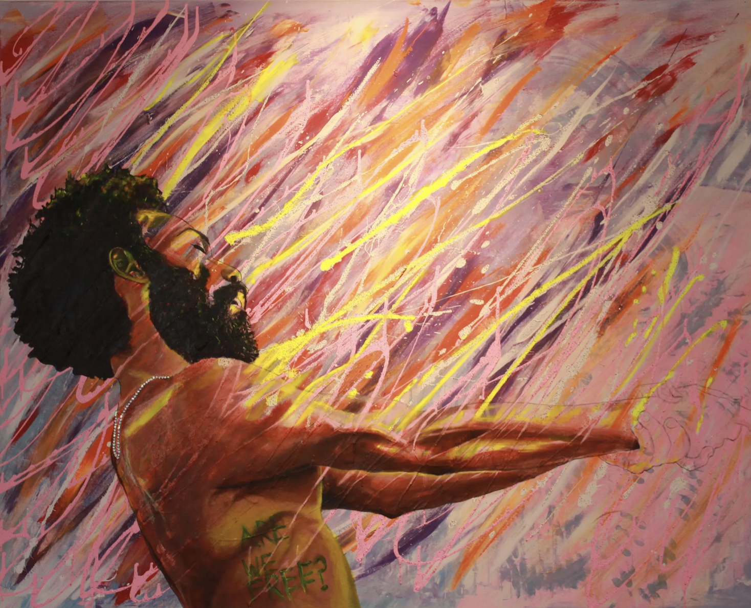 The paintings are part of “Made Visible: Unveiled Roots,” a show of works by New Haven native Marquis Brantley Sr., running now at Creative Arts Workshop through March 1.