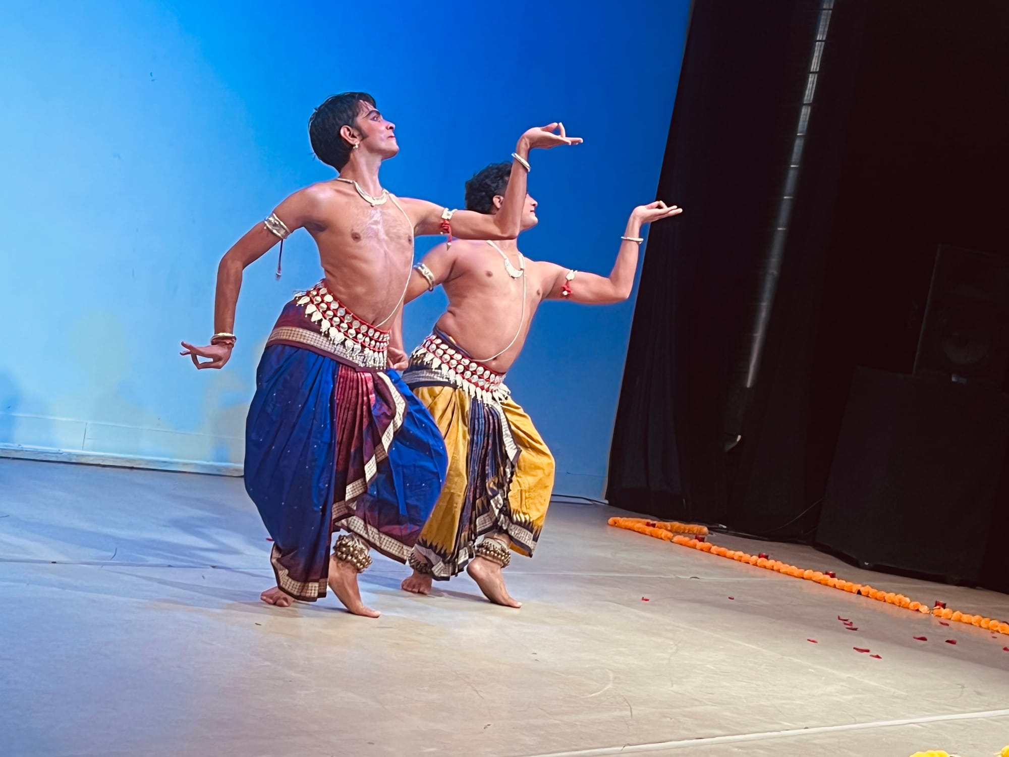 The other dances, Ananda Bhairavi Pallavi, Rageshree, Bhavani Bhujanga, and the finale, Moksha, were definitively much more engaging than the first, due in no small part to Ram and Panigrahi. They performed as a duo for all but Rageshree. Their expert movements held us captive, especially their precise foot movements and animated-yet-proscribed facial expressions. Theirs was a luminous precision. The pair were excellent: their red-painted feet fleet and supple to the ragas they brought into human form, their ankles spangled in tiny bells that chimed in rhythm to the classical music. They danced like the professionals they so obviously are.