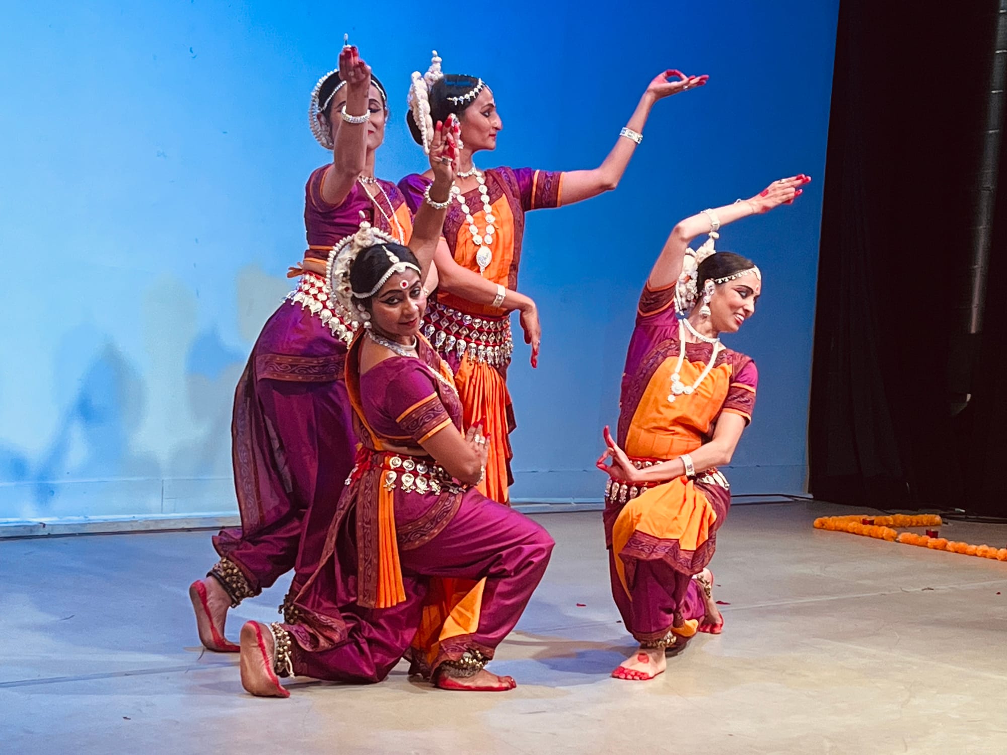 The evening’s featured dance, Odissi, is an age-old form, dating back to the 1st and 2nd centuries BCE. Although it’s no longer strictly a dance performed for temple worship, Odissi remains a devotional style of dance that utilizes postures which portray different deities, and involves intricate torso movements, hand gestures, facial expressions, and elaborate footwork that tell various stories from ancient texts.