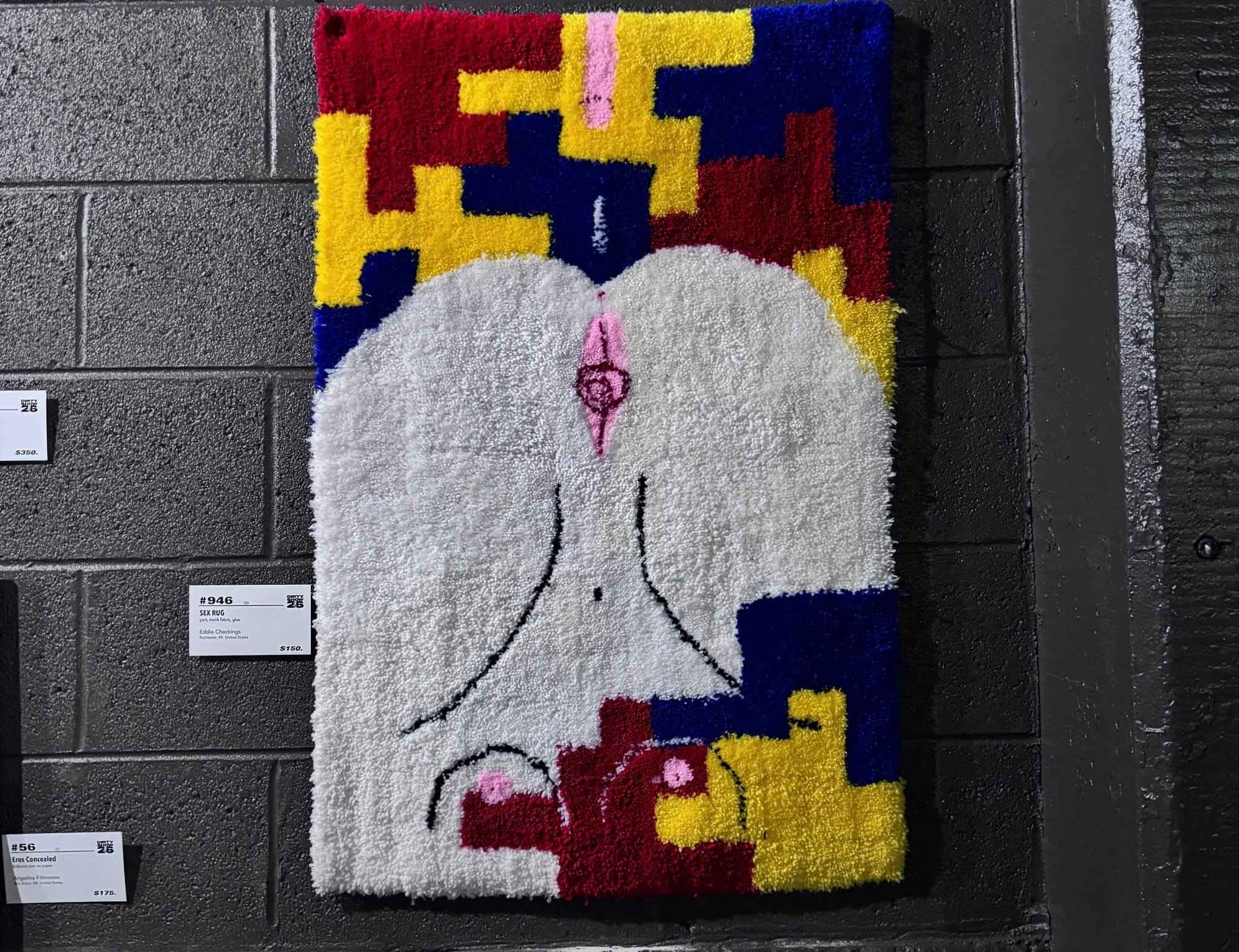 The stand-outs on the walls this year were artists embracing the arts and crafts movement, like an image of a gimp done in stained glass or several examples of hand-woven rugs and carpets with boobs and butts.