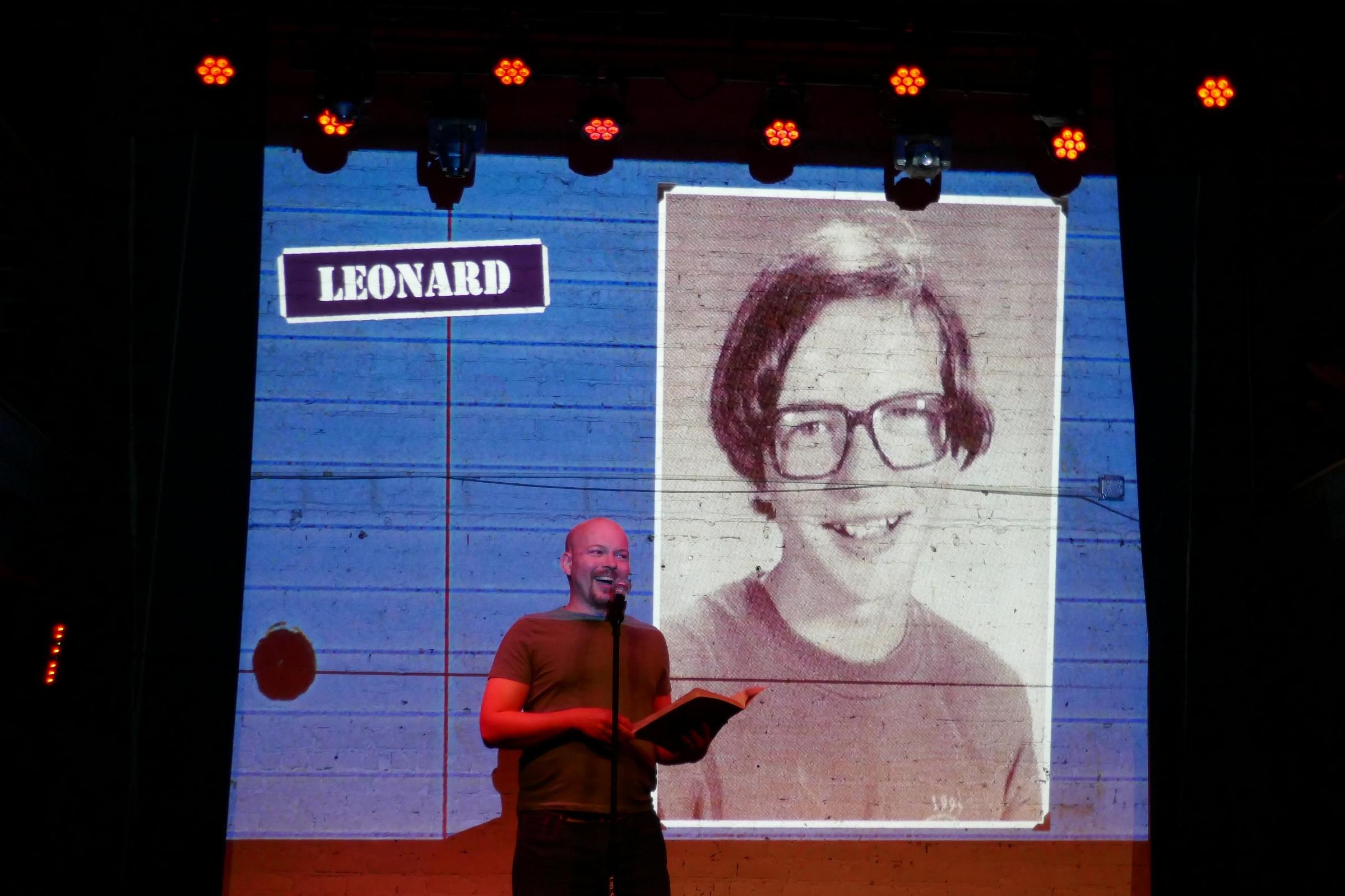 Leonard talked about starting college at the age of 16, revealing that his first crush was on his roommate … a straight guy. Reeling from witnessing firsthand as his roommate falls in love with the woman who would eventually become his future wife, Leonard wrote that “I’d like to finish my novel before I commit suicide,” complained that “all gay guys are annoying or stupid,” and repeatedly wondered if the new couple ate all his brownies that he made “FROM SCRATCH,” he angrily intoned.