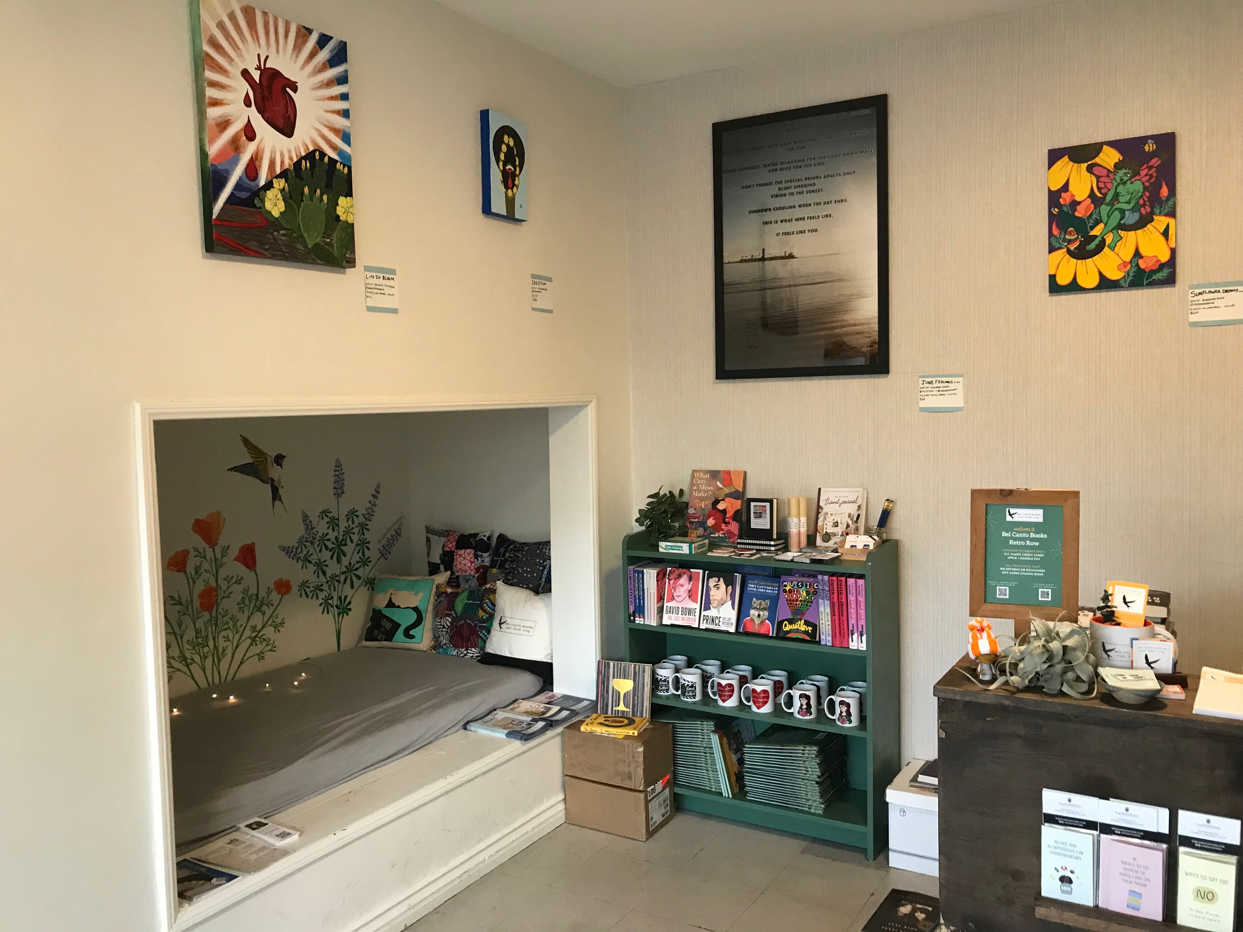 Down the row, I crate-dug at Louie’s Closet (unblemished copy of Run‑D.M.C.’s Tougher Than Leather!), then entered Bel Canto Books’ new storefront — they previously operated within the Hangout, so I’d feared the worst upon its closure. Owner/poet Jhoanna Belfer’s multiroom space is sleek, minimalist. I couldn’t resist the enticing mattress-pad reading nook in the corner. Book selections appeared curated, with offerings ranging from grief guides to disability studies, as well as best-selling fiction like Gabrielle Zevin’s Tomorrow, and Tomorrow, and Tomorrow (2022). I grabbed Danez Smith’s freshly unboxed new collection Bluff, and Belfer and I shared our enthusiasm to dive into it. Bel Canto’s ability to persevere under the threat of bloodthirsty landlords and perilous inflation was invigorating; another nearby 4th Street bookstore, Page Against the Machine, was equally holding out against late capitalism with displays of activism manuals and well-stocked Karl Marx, Angela Davis, and Benedict Anderson sections, coolly soundtracked by Doctor KA’s lo-fi mixes on the sidewalk outside.