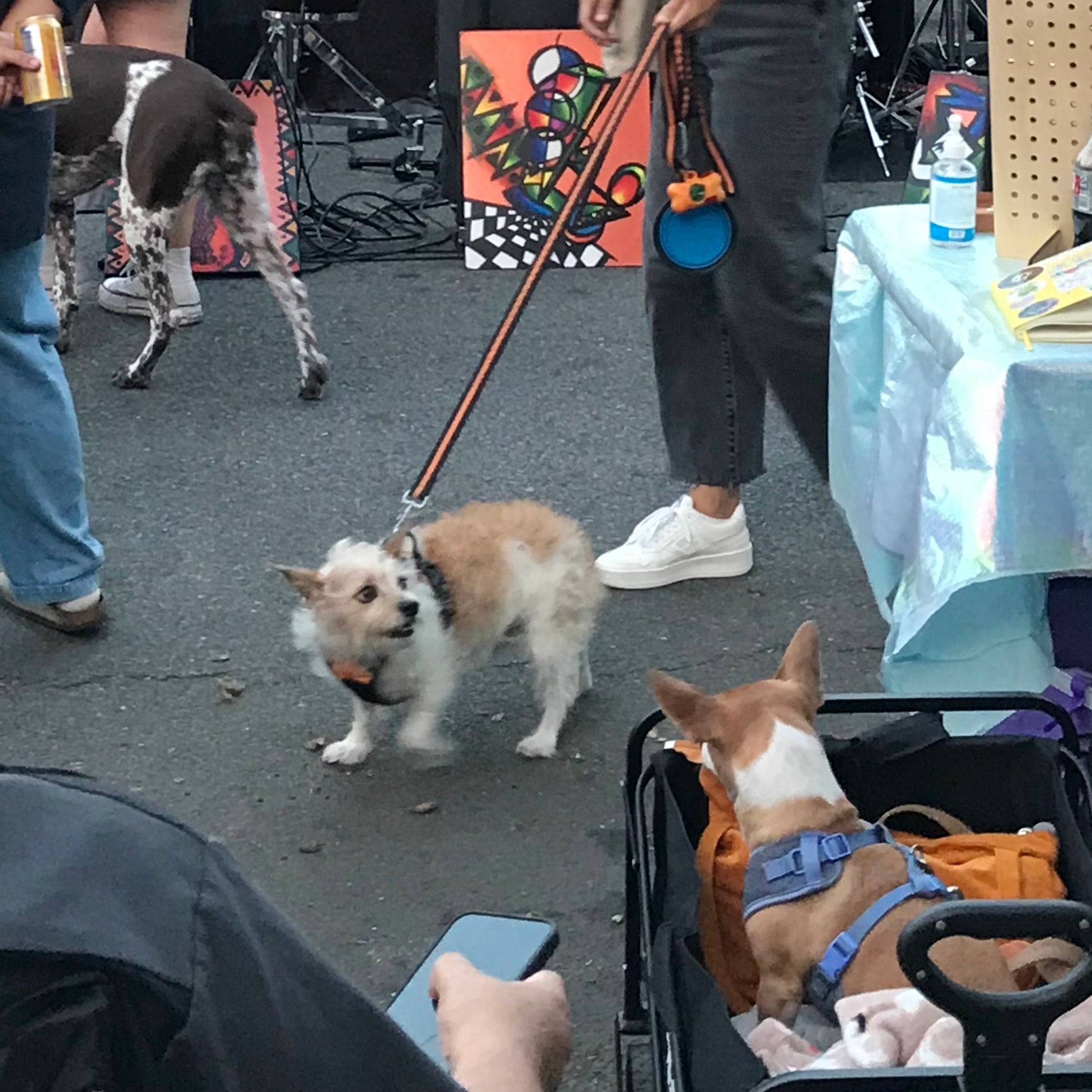 The beautiful, century-old Art Theatre was overflowing with attendees; they spilled out onto the Saint Louis Avenue closure to browse plants, ceramics, and KLBP radio swag. Toddlers boogied to the beats of Krooked Fingerz Express’s multigenerational jazz fusion and DJ Phatrick’s turntables, while the event’s true stars paraded on leashes, in wagons (this month’s theme: Dog Days of Summer). Dachshunds donned honeybee costumes, golden retrievers licked every hand, and a grizzled, pale-eyed Australian shepherd looked like he’d pilot your single-engine flight to Utqiagvik in a blizzard. Dogspotting became the night’s party game: what looked like a roving Pollock painting became a German shorthaired pointer; meanwhile, a corgi dancing on hind legs turned out to be a fire hydrant.