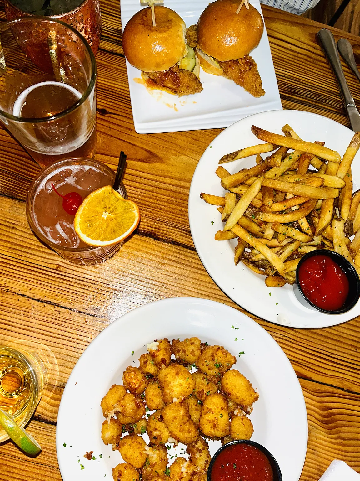 Booker’s facilitates a boisterously feel-good environment, where a draft beer and well shot each easily turned into a spread of deep fried food and ample alcohol. There were all under $10 hot chicken sliders, Wisconsin cheese curds and hand-cut fries. Six-dollar strawberry daiquiris and whiskey gingers completed the procession. I started to get nervous about putting our hoard of discount dishes on my boss’ tab.