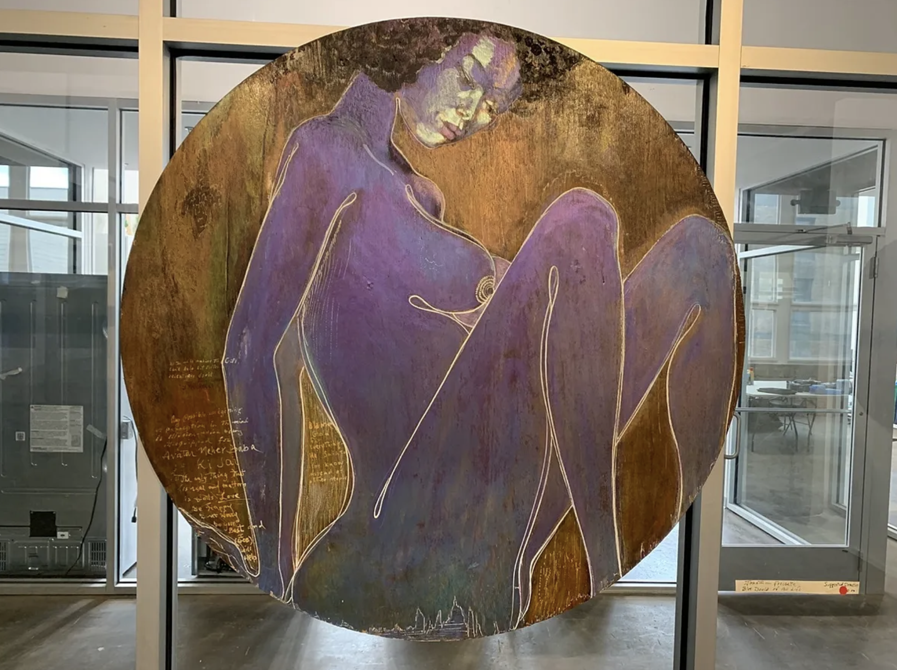 Take the work of Jonathan David Frechette (pictured above), who creates his work using tabletops. I didn’t even notice that they were tabletops because I was so focused on the image itself. The blue hues of the woman in his image conveys a depth of emotion, and the lines that define the form are like a separate work of art on their own. Frechette’s artist note next to the image is a perfect example of the idiosyncrasies of the artspace itself, a handwritten chronology of his journey across the country:
