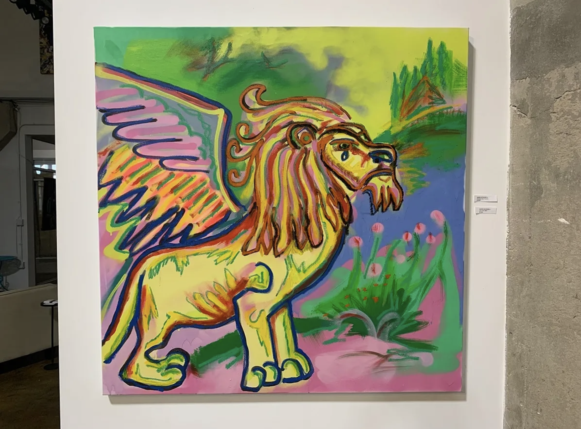 Another Connecticut artist, Mark Schebell, used his artwork to help him face the mental hardship he endured during his transition away from the United States Marine Corp in 2014. His psychedelic chimera comes to me at a particularly difficult time in my own life. What could be more fierce than a flying lion? Yet as you look closer at the artwork, you can see the single tear on the chimera’s cheek. The juxtaposition of the bright colors with the somber imagery challenges the conventions of art in the same way that Frechette’s pieces do, with colors meaning much different things than the audience normally assumes.