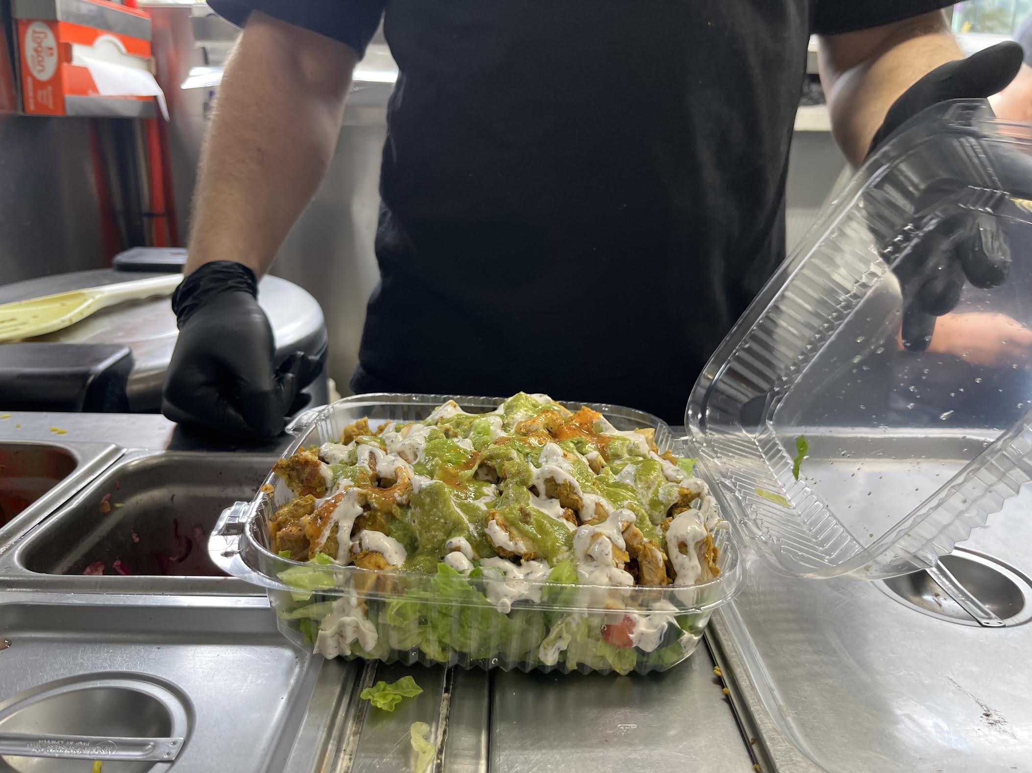 I, as always, also got the chicken salad before leaving Curbside Gyro. At most halal carts, the options are meat with salad, pita and/or rice. Choosing salad might sound crazy — it’s normal to expect wilted greens from a sidewalk food stand. It remains a mystery as to why, but Hacene’s veggies are always robust, crisp and flavorful. It could be a placebo effect, a psychological shift that Hacene imparts upon us with his personality. But it comes down to this: Nobody asks you how much sauce you want on your platter anymore. And it’s rare that you get asked how your day is going. Carts have become, more than ever, about grabbing your food and going. Sure, at Curbside Gyro, my meal is made in under 10 minutes during rush hour. But I never feel rushed — rather, I’m reminded to take my time.