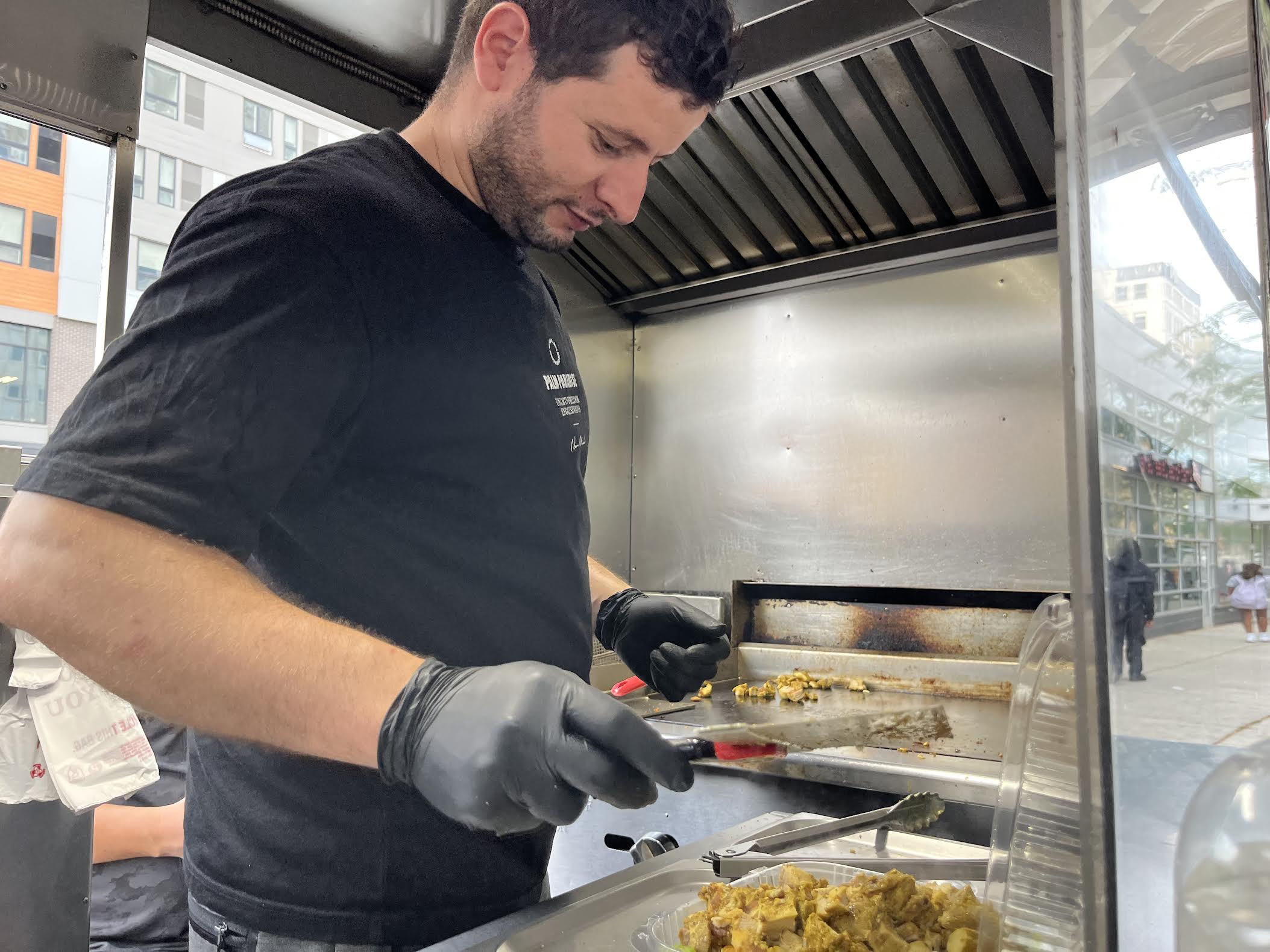 That might sound like the standard salad plate you could grab from any of Philly’s over 60 halal stalls. But the fare at Curbside Gyro hits totally different, and that’s because of the man behind the counter — er, inside the cart.