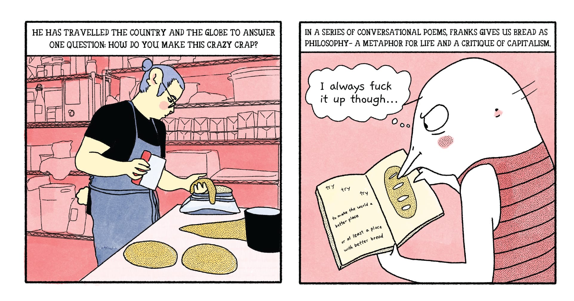 All Over Get This Bread A fresh book by baker and writer Jim Franks frames culinary experimentation as a coping tactic for existential dread. Izzy True 10 Mar 2025 · 1 min read