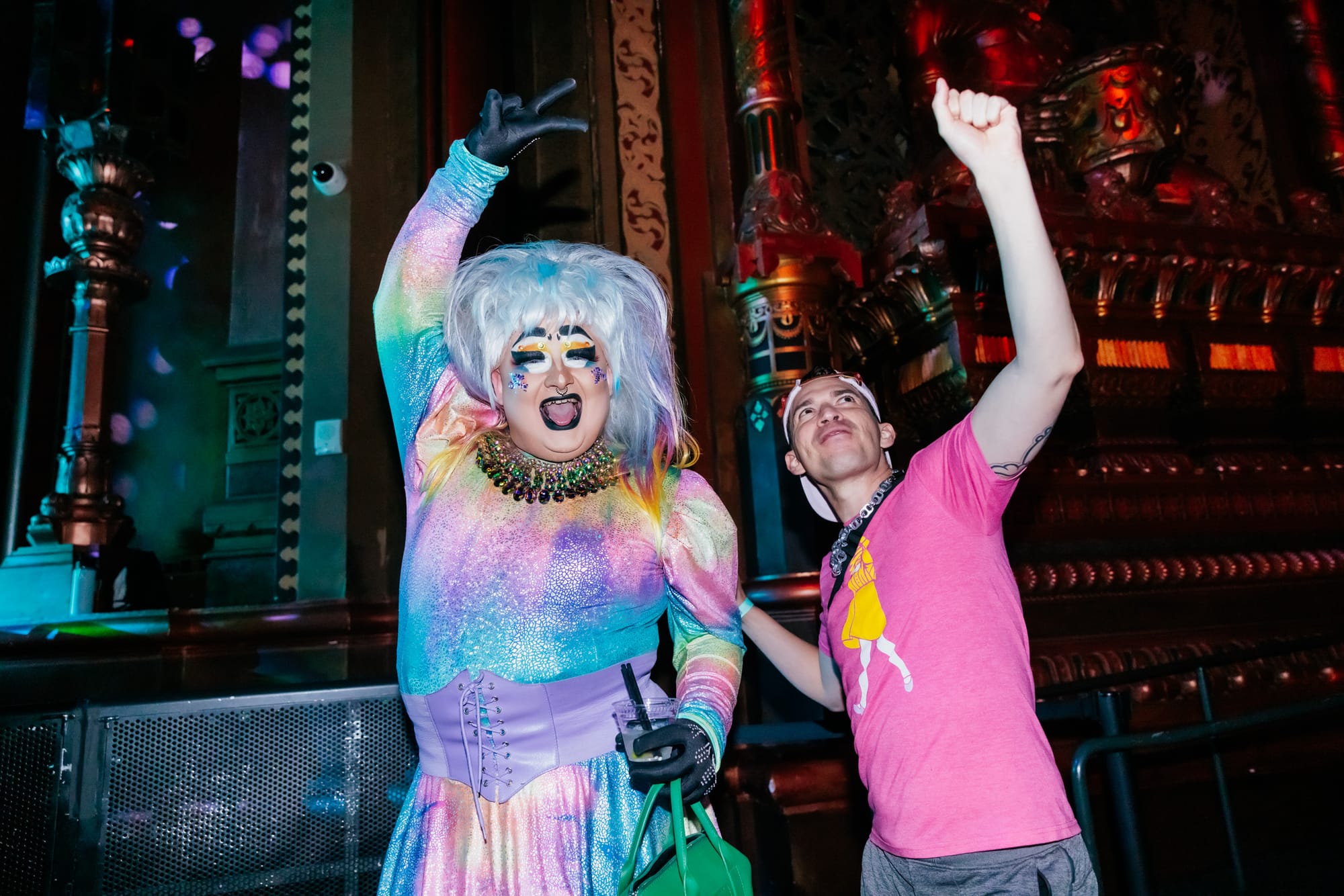 When Trixie finally arrived—with enormous fanfare and an even bigger beat—we were rewarded for our patience. “You all want to fuck me!” she shouted gleefully. “Well, all of you can!” And with that, the party went into overdrive. She twirled, joked, and reminded us all why we fell in love with her back in Season 7 of RuPaul’s Drag Race—and why she won All Stars 3. The orca eyed queen has come a long way since then: with her shows with fellow contestant Katya Zamolodchikova, her albums, and cosmetics line, she is arguably one of the most successful contestants ever to graduate from the franchise.